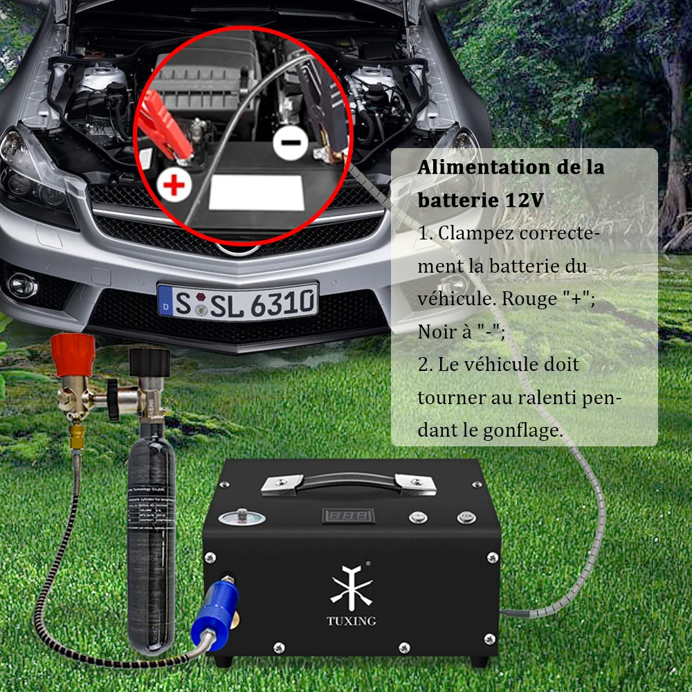 Этот воздушный компрессор PCP может быть напрямую питается от автомобильного аккумулятора 12 В в поле.
