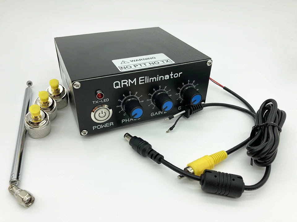 Подавитель QRM вставляется в питатель антенны от trx без каких-либо других изменений к радио. Коробка имеет встроенный контроль PTT, чтобы поддерживать связь с онкологистом во время передачи. Однако требуется дополнительная вспомогательная приемная антенна, например, антенна 2 м или всего несколько метров проводов в сарае. Две антенны получают нежелательные сигналы, что приводит к различным фазам. Отменитель QRM теперь позволяет регулировать фазовый угол и усиление, чтобы отменить нежелательный сигнал, прежде чем он достигнет переднего конца приемника! Он основан на совершенно инновационной концепции и не может сравниться с нормальной производительностью «глушителя».