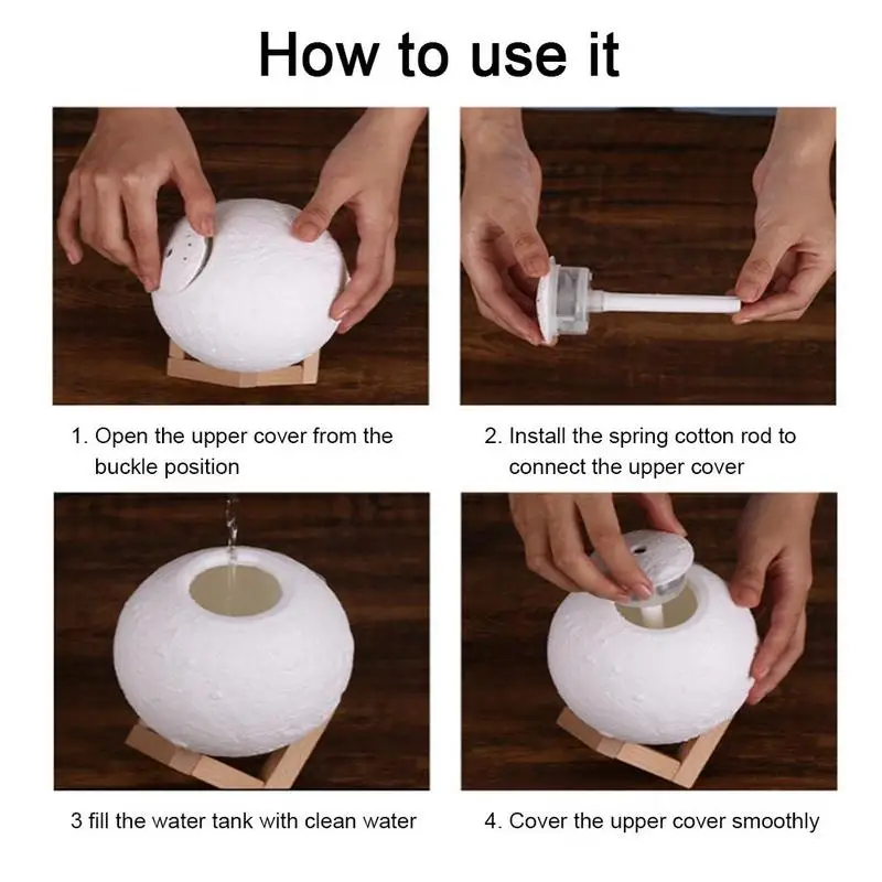 Лунный увлажнитель (продукт подходит только для функции увлажнения, не подходит для ароматерапии эфирных масел, долгосрочная ароматерапия эфирных масел вызовет повреждение продукта)