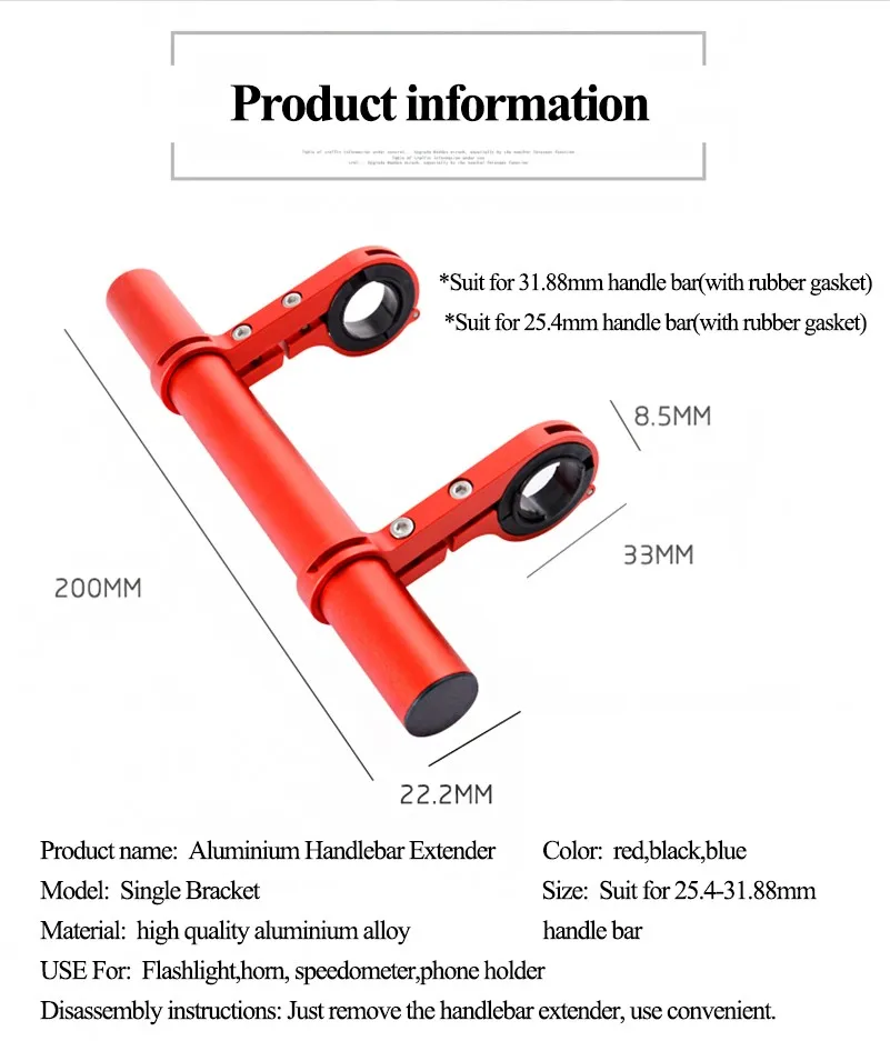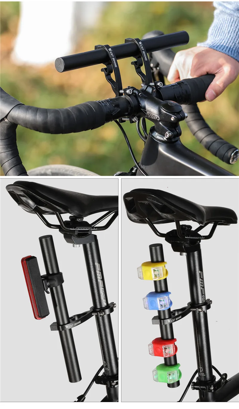 WEST BIKING велосипедный удлинитель из алюминиевого сплава, держатель для велосипедной лампы 20-32 мм Информация о товареНазвание товара: удлинитель руля велосипедаМодель: двойной/одинарный кронштейнЦвет: синий/красный/черныйПодходит для: диаметр 20-32 ммВес: Двойной кронштейн около 115 г/один кронштейн около 61 гИспользование: Увеличьте пространство на руле велосипеда