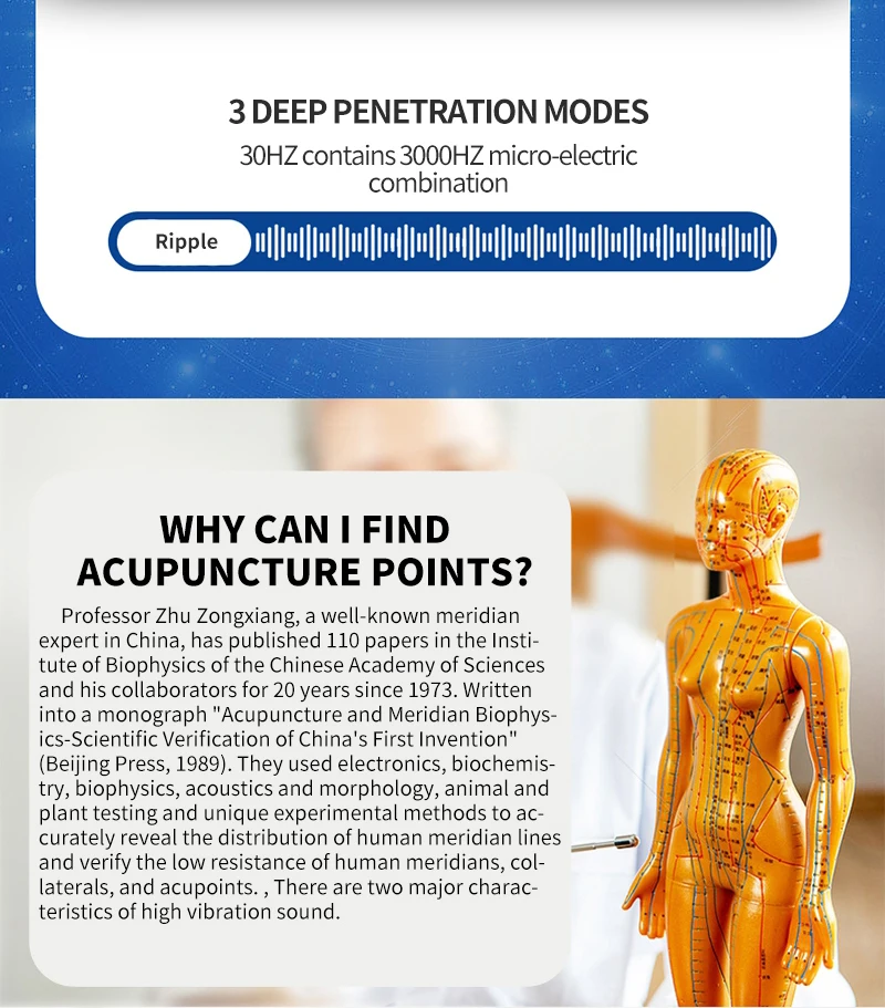 1. Согревающий и активирующий Меридиан 2. Стимулирование кровообращения путем удаления застоя крови 3. Снимает боль, улучшает иммунитет 4. Регуляризация внутренней секреции Особенность электрической акупунктурной ручки Сочетание современных биотехнологий, Высококачественная Массажная ручка, хорошо подходит для укрепления здоровья. Электрическая Магнитная терапия без пирсинга кожи для иглоукалывания. Простая работа, легко носить с собой. Безопасный и эффективный, без побочных эффектов. Доступное семейное использование. Приятный внешний вид, выглядит как ручка.