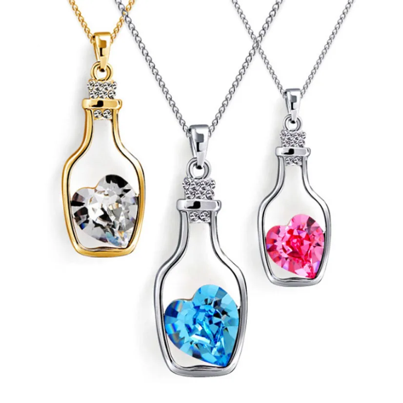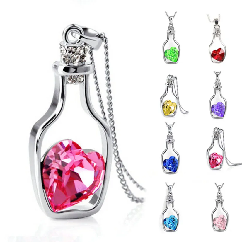 Ожерелья с кристаллами в виде сердца, женская подвеска в виде бутылочки желаний, подвесное очаровательное колье, цепочка для ювелирных изделий, недорогие товары для девушек