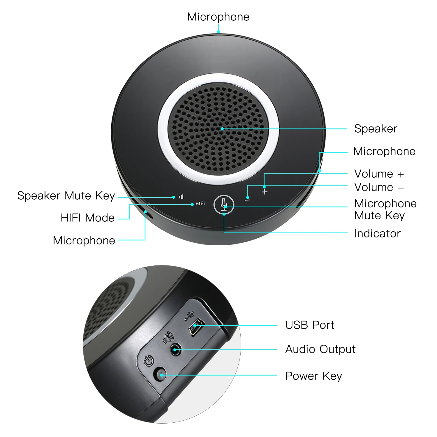 Оснащен высокомощным двухконденсаторным всенаправленным микрофоном, который может получать естественный и чистый звук на 360 ° в пределах 20-60 квадратных метров, с радиусом захвата 6 метров.