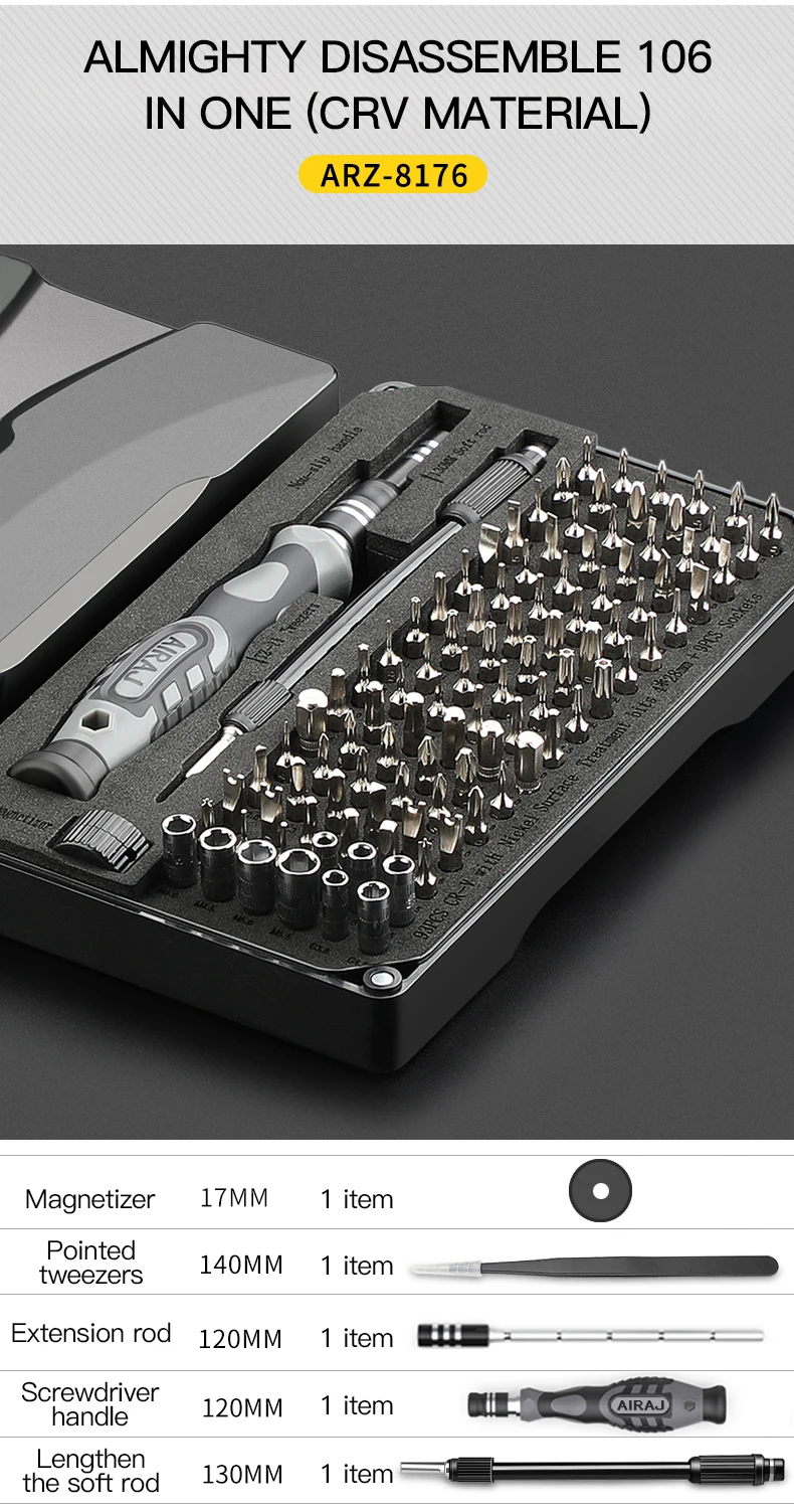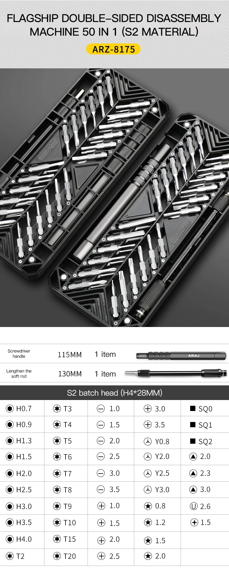 Набор отверток AIRAJ-стальной бит, Магнитная отвертка, удлинитель, набор, коробка для инструментов, электроники, ноутбука, сделай сам, ремонт