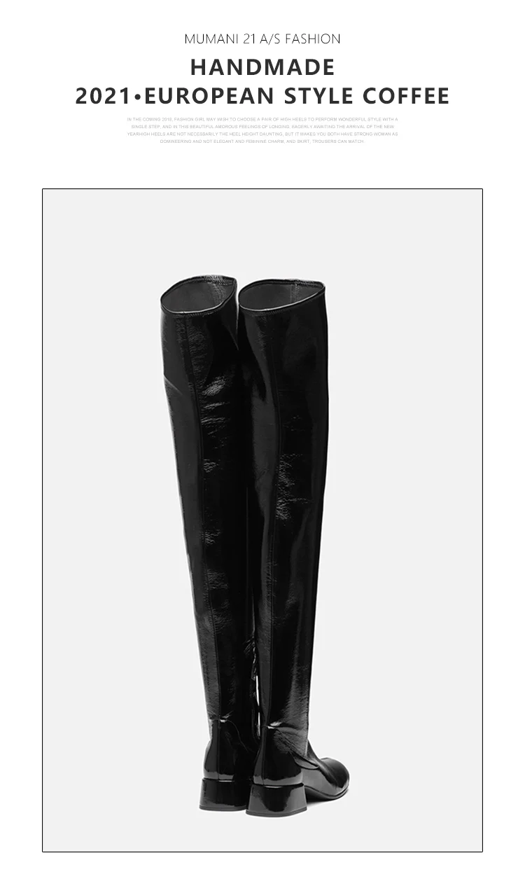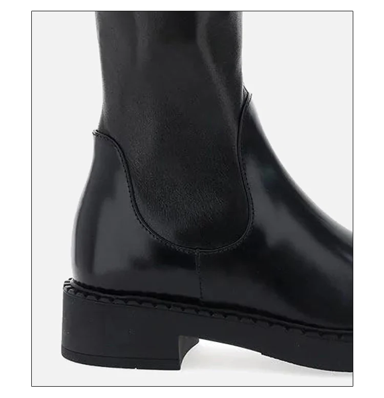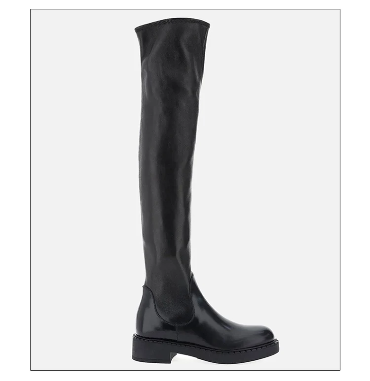 MUMANI/женские Сапоги выше колена эластичные высокие эластичные сапоги из натуральной кожи на плоской подошве на низком каблуке средней высоты