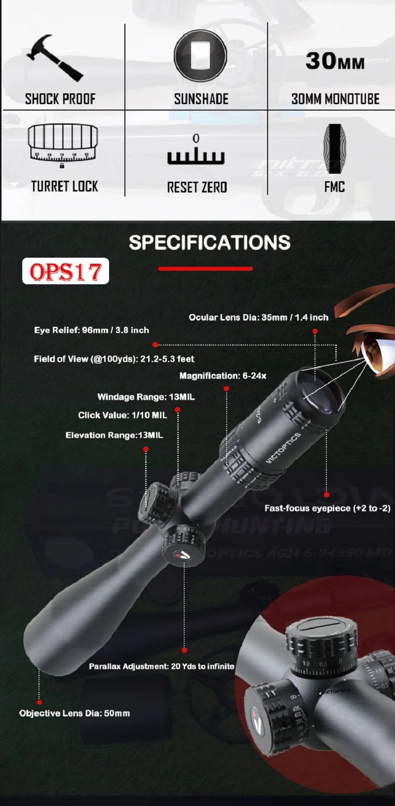 · Увеличение: 6-24x