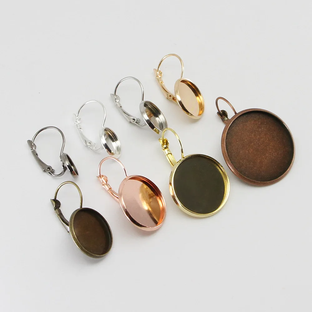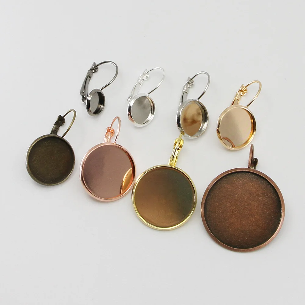 10 шт./лот Французский рычаг кабошон серьги установка пустые серьги База Камея оправы лоток для ювелирных изделий 8 10 12 14 16 18 20 25 мм