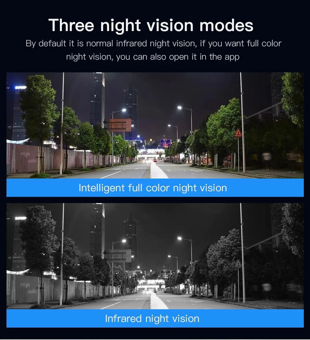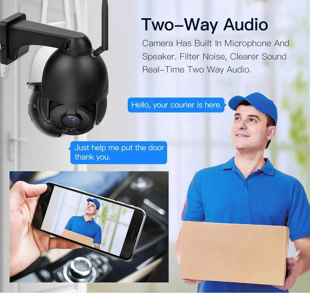 Камера будет регулировать вращение панорамирования/наклона и увеличивать автоматически, захватывая четкие контрольные цели и автоматическое отслеживание движения человека, а также нажимать оповещения по электронной почте или уведомления на ваш телефон.
