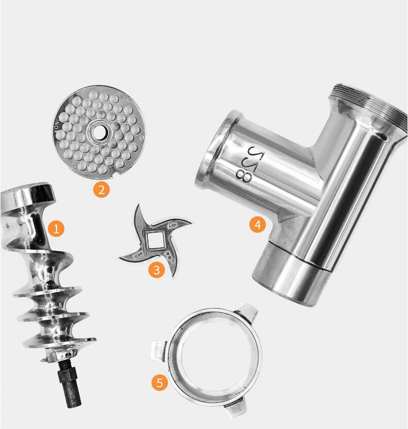 Название продукта: настольная электрическая мясорубка Мощность: 1100 Вт Напряжение: 110 В/220 В Производственная мощность: 150 кг/ч Оснащен сеткой для ножей: 2 шт. По умолчанию диаметр нетто ножа: 6 мм/8 мм Вес: 25 кг Размер: 290*300*350 мм