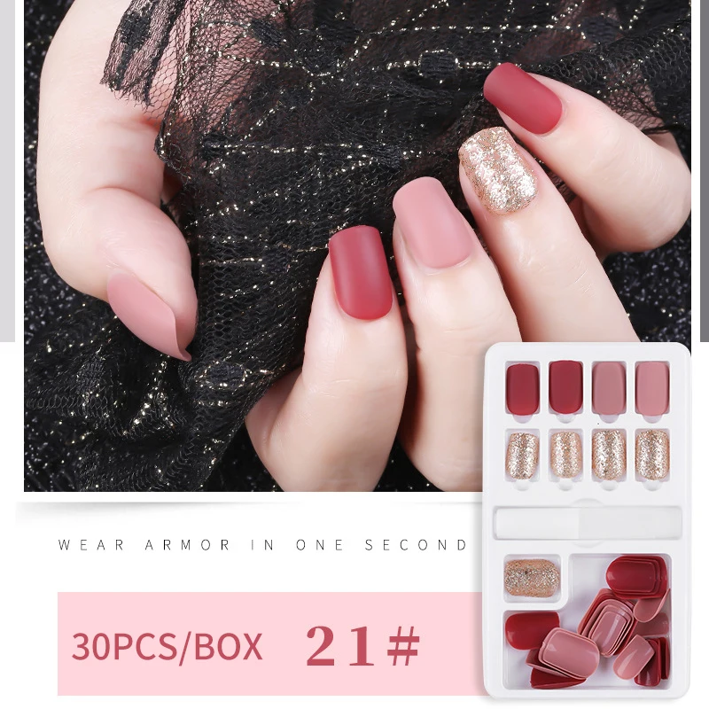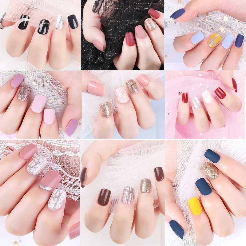 Посылка: 1 коробка = 24 накладных наконечника для ногтей + 1 клей для ногтей