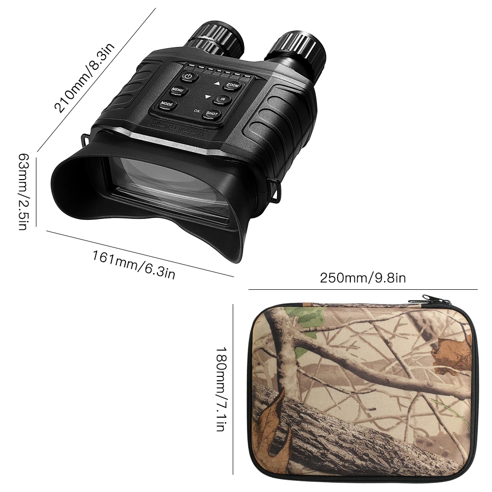 Поддержка дневного или ночного использования: цифровой бинокль ночного видения для ежедневного и ночного использования. Встроенный инфракрасный светодиодный индикатор 5 Вт и 850нм, позволяет просматривать в темноте до 500 м/546 ярдов. И ИК-светильник для легкой регулировки.