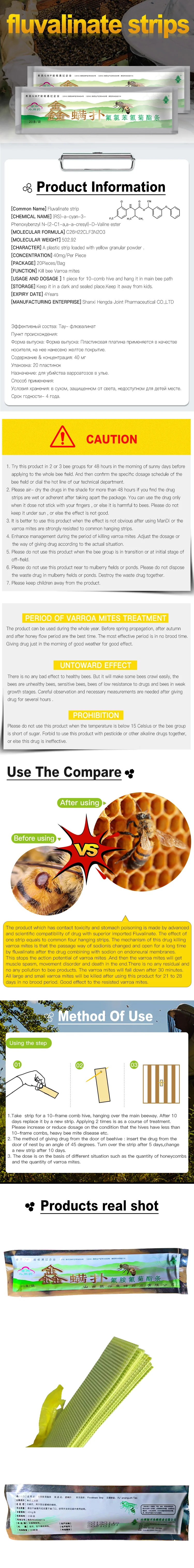 Использование и дозировка посылка: 20 полосок дозировка: Возьмите 1 полосу в одном стандартном улей, измените его через 15-20 дней, 3 раза в качестве одного лечения. Небольшие полоски с высокой концентрацией, которые должны быть отрезаны от средней линии. Он может регулироваться в соответствии с состоянием пчелиной колонии, температурой и т. д. не применять лекарство ниже 15 градусов. Подробности см. В инструкции