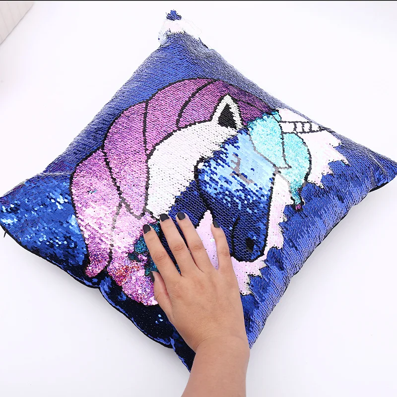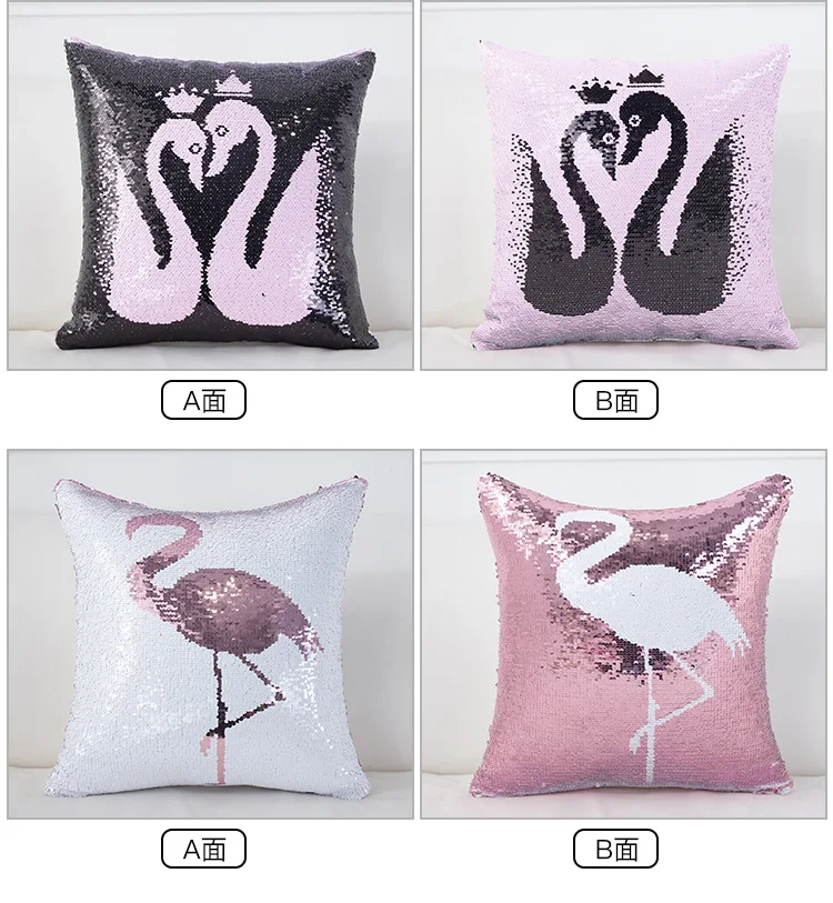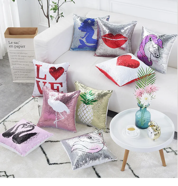 Двойной цвет флип вышитая Подушка с блестками чехол Чехол Единорог Фламинго шаблон диван наволочка украшения для дома чехол украшение дома