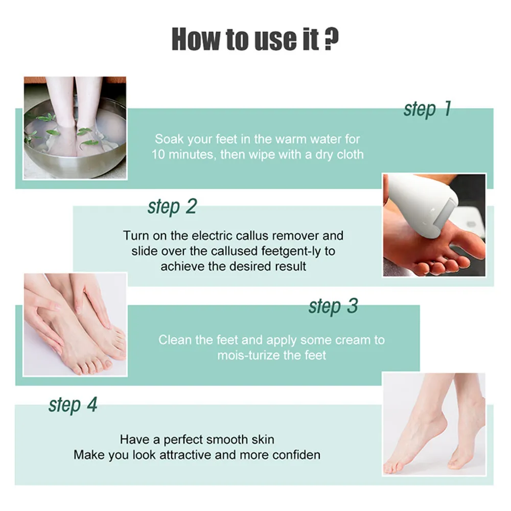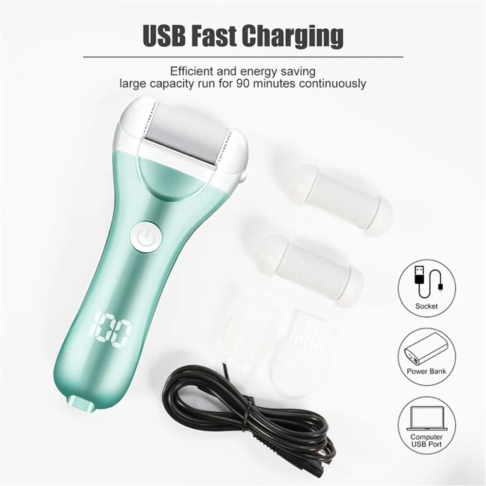 Feature: Ergonomic design, easy to hold and use. Made of superior material, it is reliable and durable to use. LED display Power status display. Speed adjustable, you can easily to control its speed as your request, fast or slow, more convenient. No need battery, Turn on switch, you can use it directly. Safer and more effective than metal scrapers and easier to use than a pumice stone. Suitable for all kinds of people. You don't have to be embarrassed to expose your toes and feet anymore. Specifications: Item Type: Electric Foot Grinder Color: Gold, Green Material: ABS Power: 3W Batter Capacity:1200mAh Charging Time: 6 hours Using Time: 90 minutes Load Speed: 1700-2000RPM Plug: USB Package Size:19.5 x 15 x 5.4 cm Package Included: 1 x Electric Foot Grinder 1 x USB Charging Cable 1 x Cleaning Brush 1 x Coarse Head 1 x Medium Head 1 x Fine Head 1 x User Manual