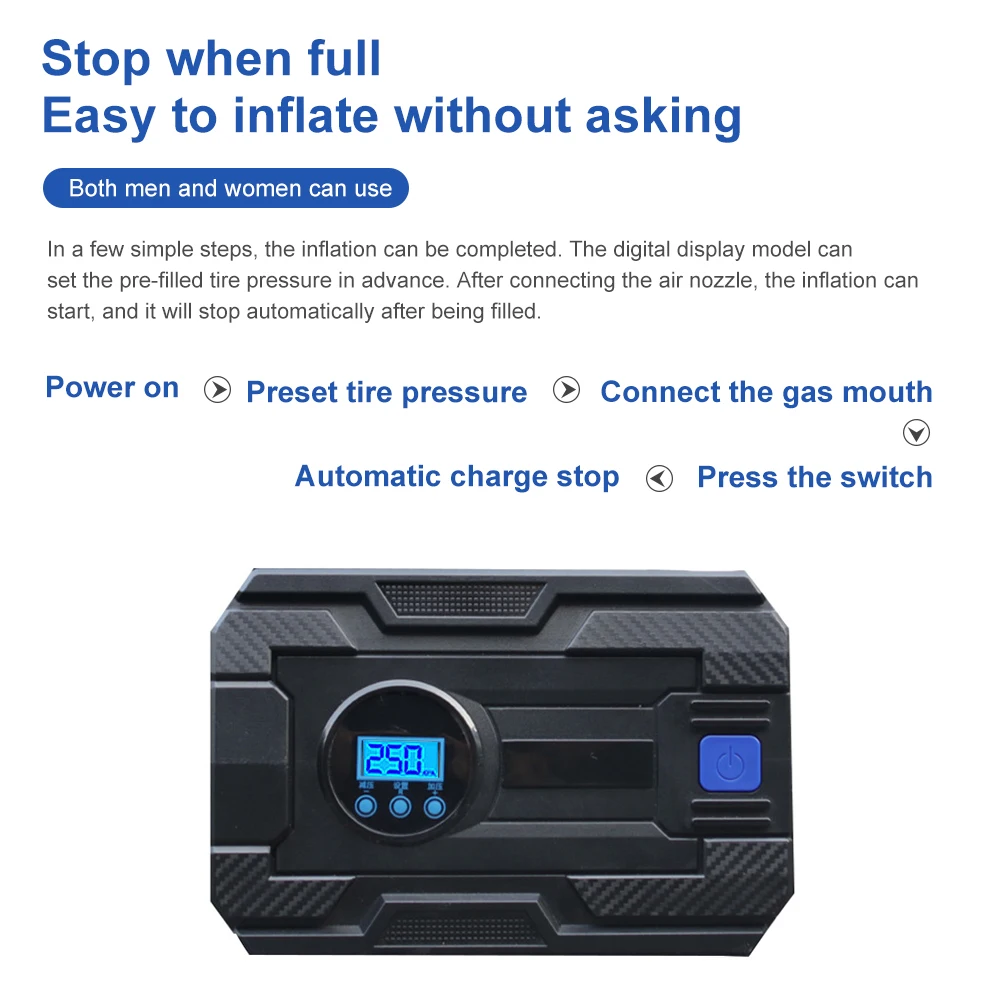 Автомобильный воздушный насос, автомобильный воздушный насос, 12 В, электрический воздушный цилиндр для шин, предустановленное давление в шинах