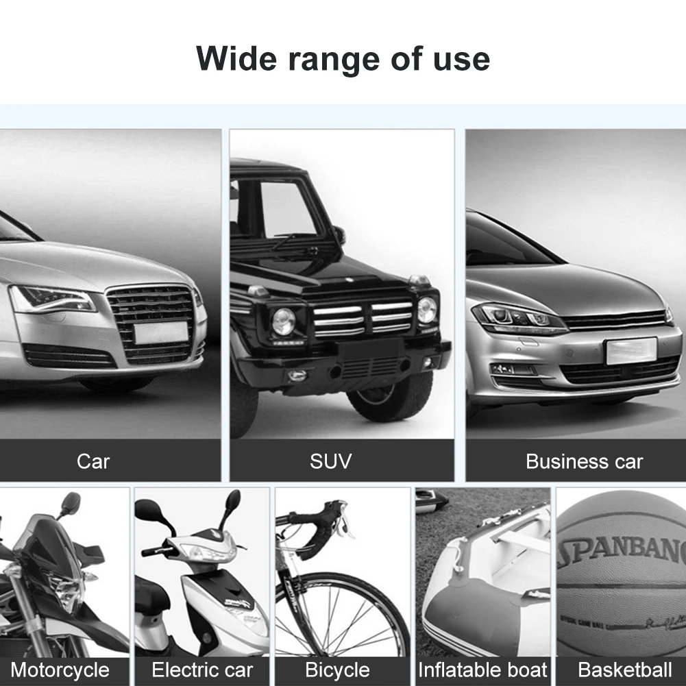 * 5. Оснащен полным набором насадок для надувания, его можно использовать для надувания шин, резиновых лодок, воздушных подушек, надувных игрушек, шариков и других целей.
