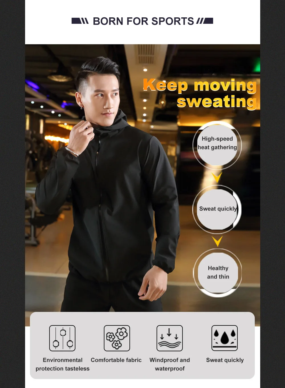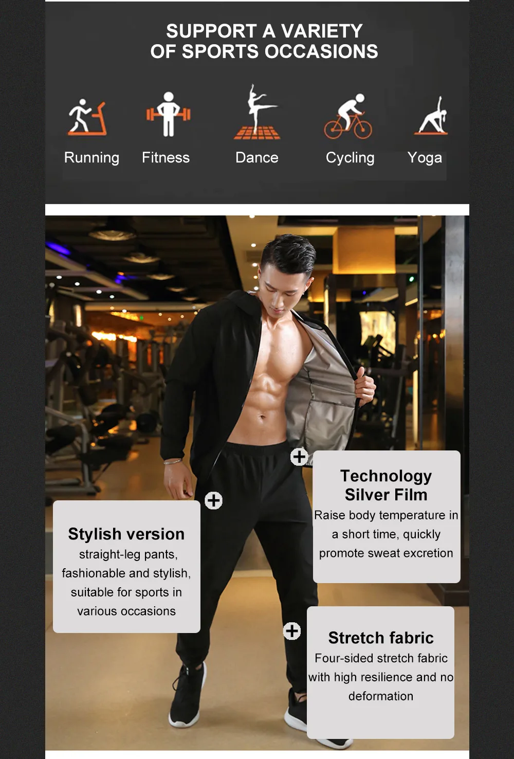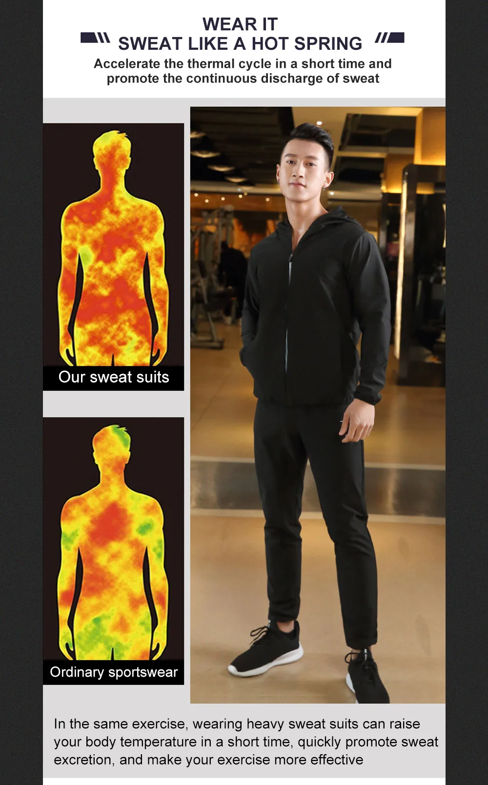 Мужской тренировочный костюм для сауны ROEGADYN, спортивный костюм с капюшоном для похудения, фитнеса, высокой эластичности