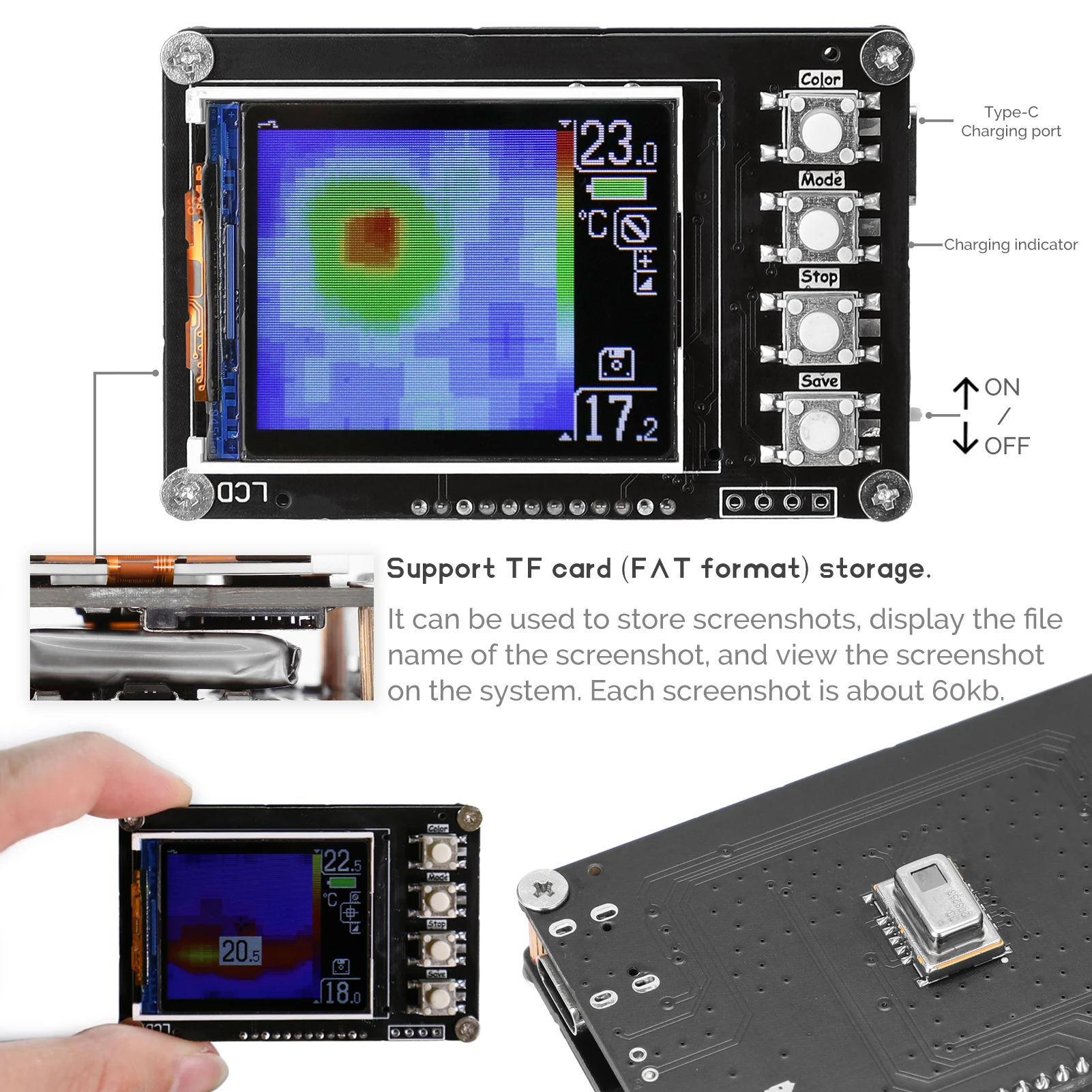 Поддержка tf-карты (формат FAT) для хранения скриншота, вы также можете проверить скриншот.