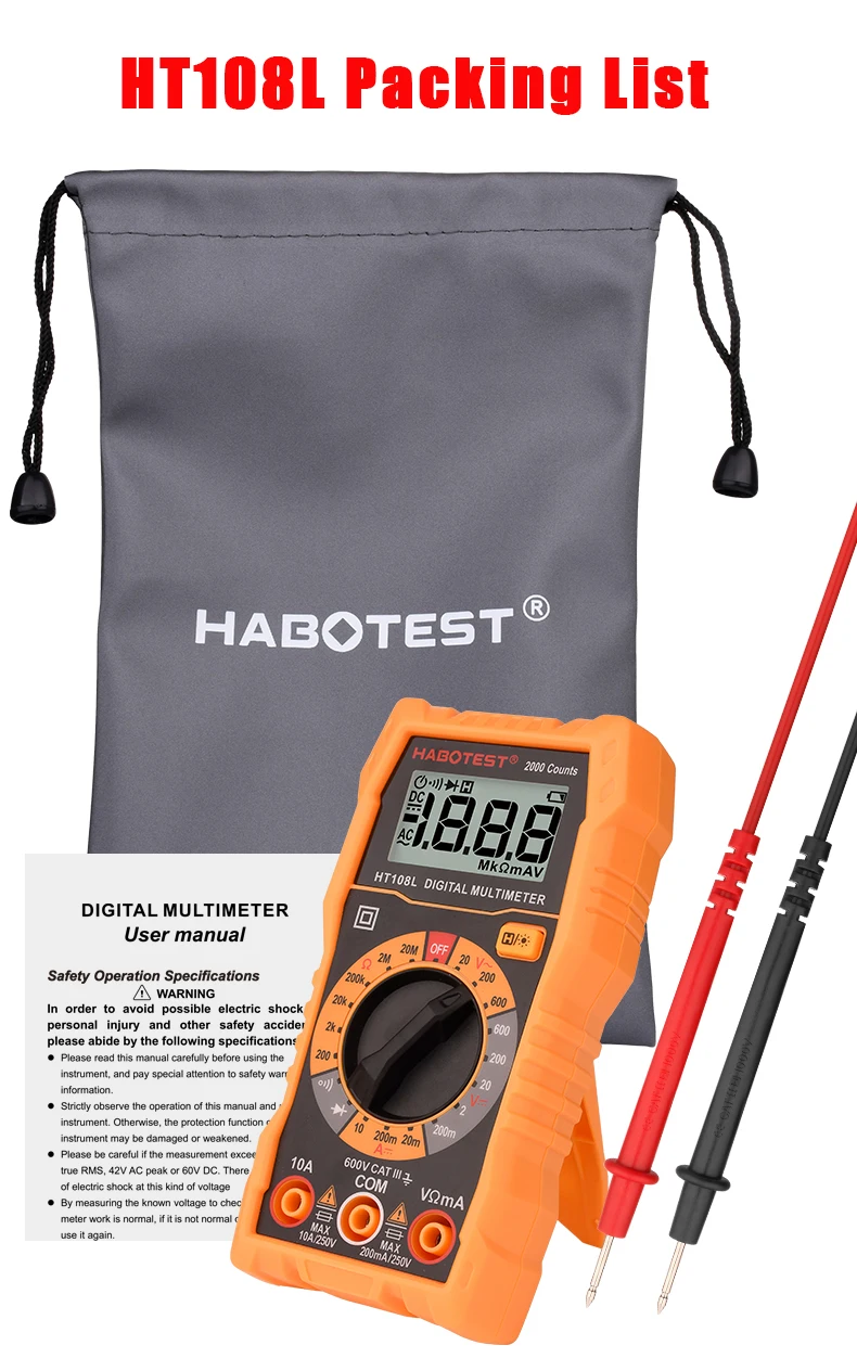 HABOTEST Профессиональный цифровой мультиметр истинный RMS мультиметр тестер ручной умный измеритель напряжения серия Ohm Hz AC DC