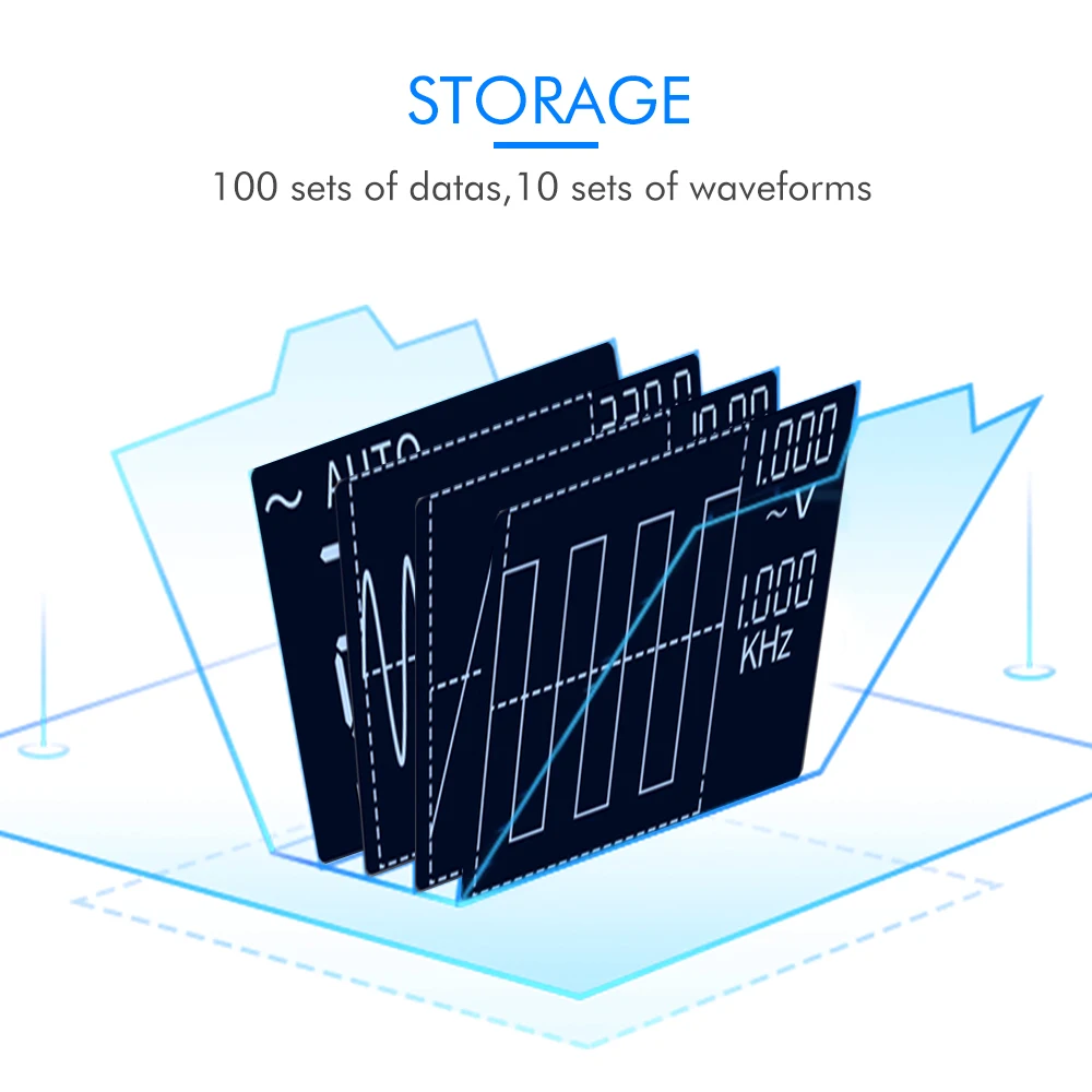 Цифровой мультиметр с 200K высокоскоростной выборкой A/D, 4000 отсчетов автодиапазона, однокнопочный переключатель графического отображения сигнала во время измерения.