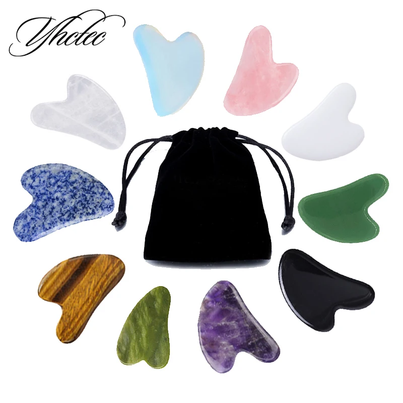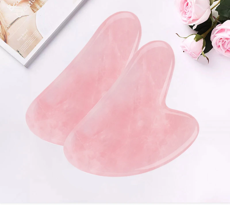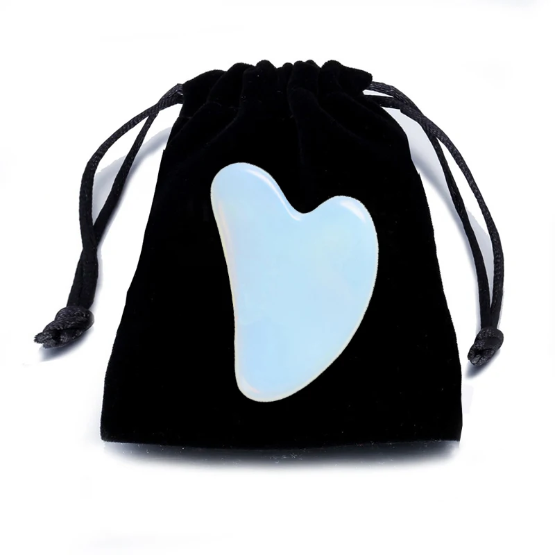 Розовый кварц натуральный нефрит гуашь скребок гуаша массаж лица спины глаз Массажер красота лицо гуашь набор с черной бархатной сумкой