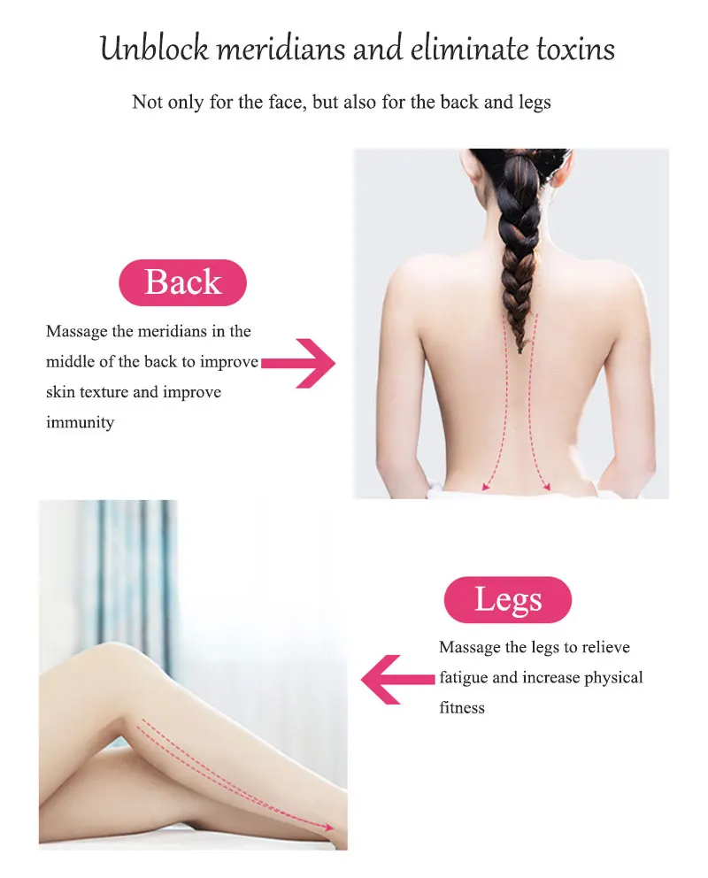 Стимулируя связанные с телом меридианы, акупунктурные точки, для достижения кровообращения, драги меридиана, боли в qi, детоксикации тепла, создания высокомерия и желудка, физических целей фитнеса. Традиционная зеленая терапия, может улучшить кровообращение организма, способствовать метаболизму, повысить иммунную функцию организма, соскабливающая доска-это профилактика заболеваний и лечение естественного здоровья без лекарств.