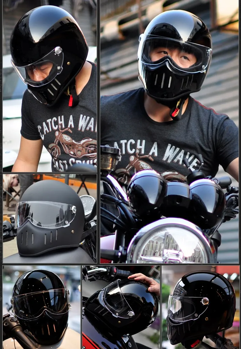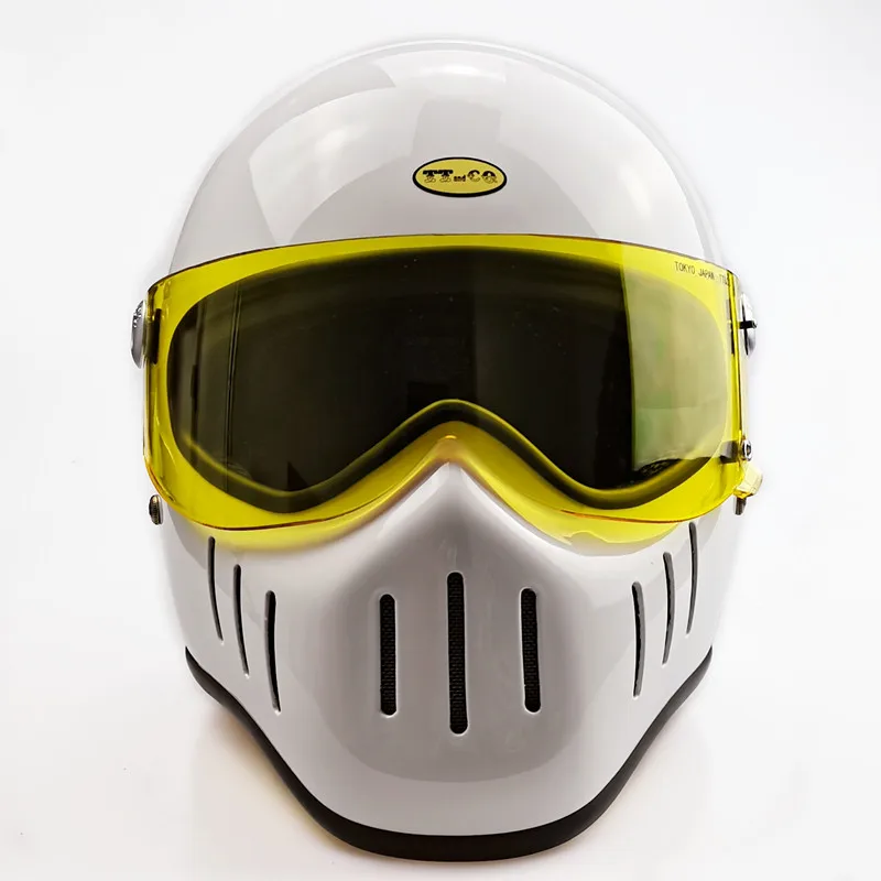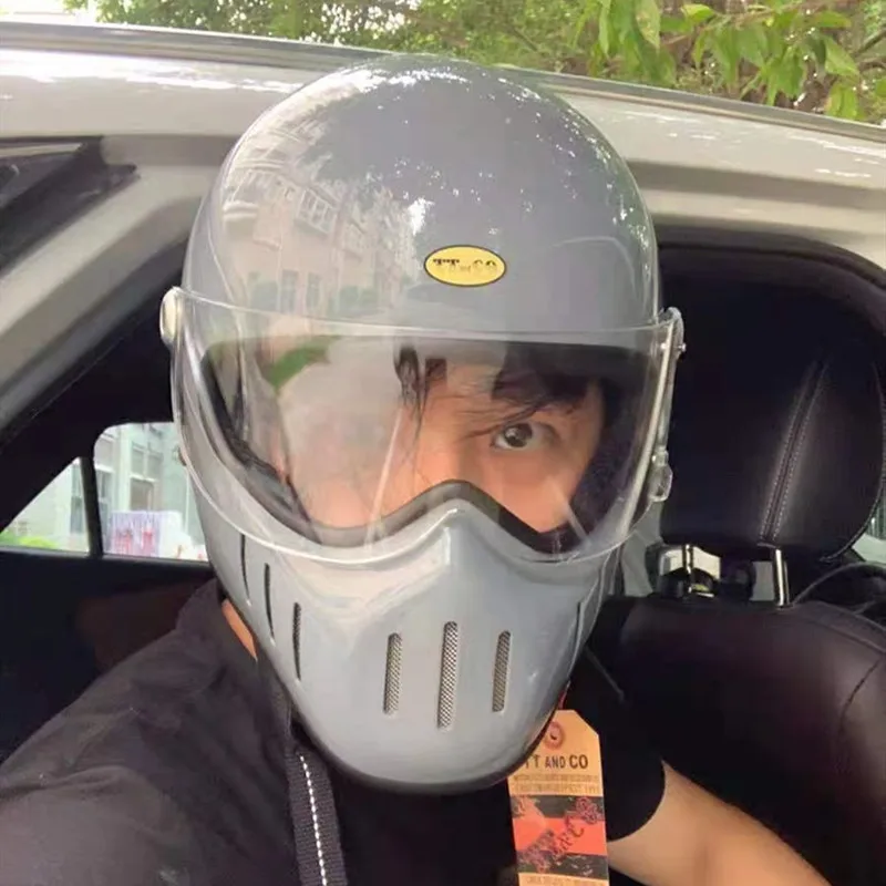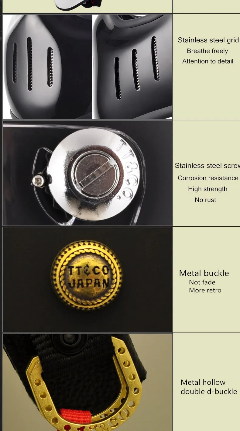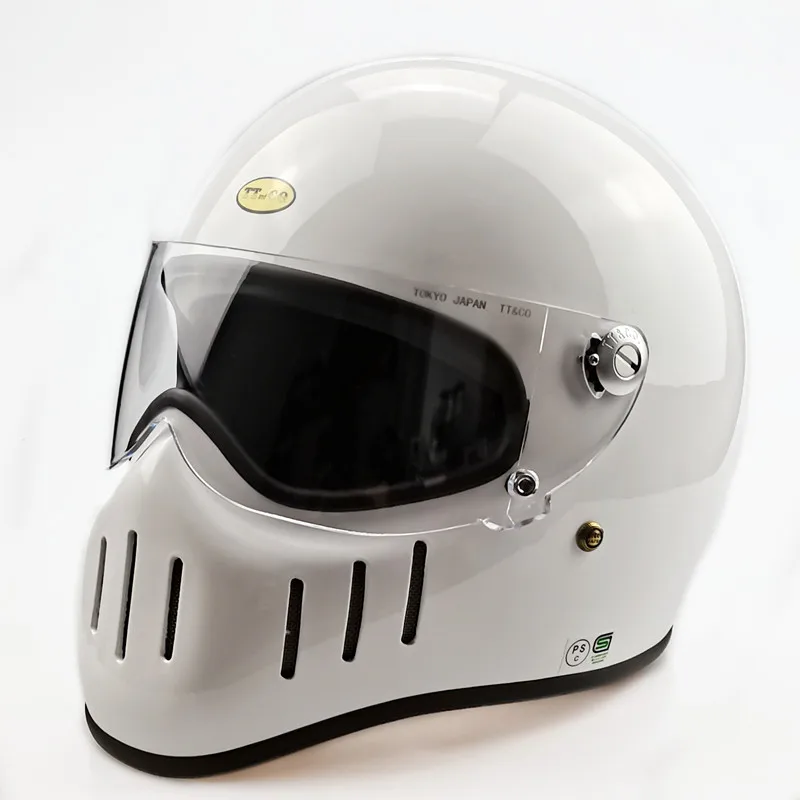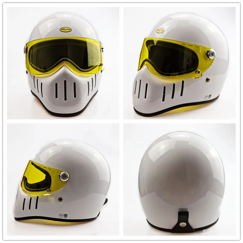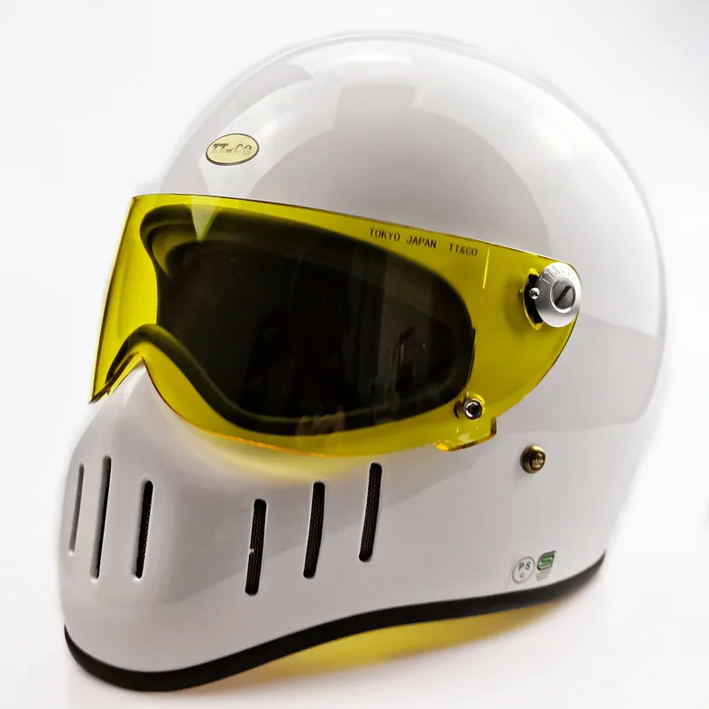 TT & CO классический ретро шлем! Шлем изготовлен из FRP, не дешевые АБС-пластик! Светильник и безопасной! Шлем весит всего 1,2 кг! Объектива против запотевания! Подкладка может быть удалена! Ветрозащитная линза может быть удалена! Есть четыре цвета на выбор, прозрачные линзы (T lens), черные линзы (B lens), желтые линзы (Y lens), серебристые линзы (S lens).
