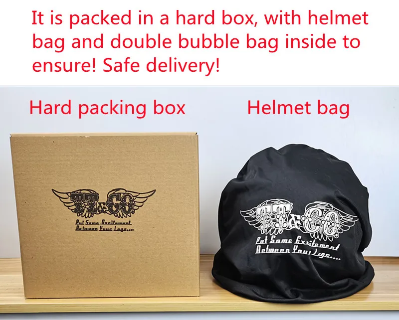 Шлем упакован в жесткую коробку, а шлем и двухслойный пузырчатый мешок используются внутри для обеспечения безопасной доставки