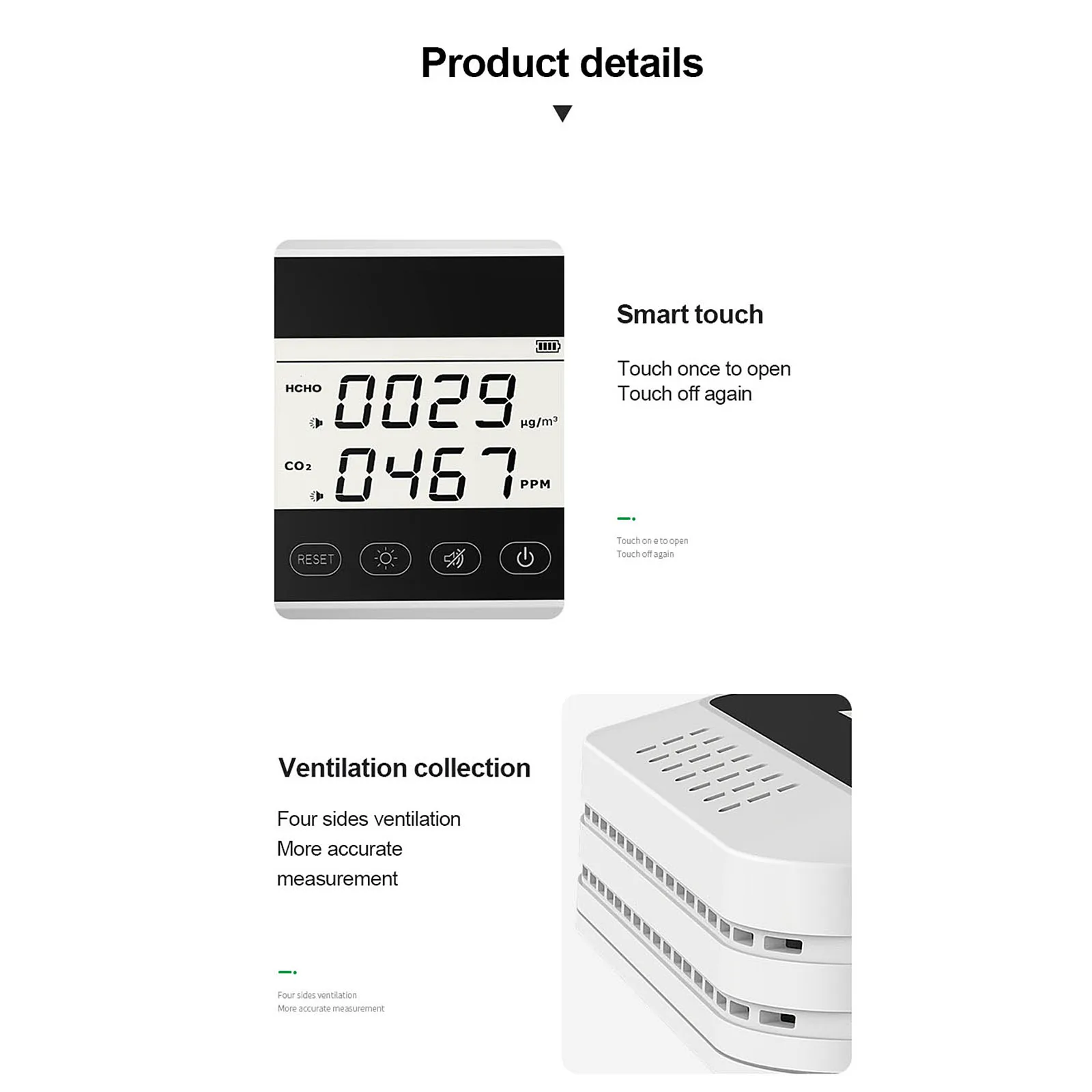 1. Высокоточная внутренняя и наружная система контроля качества воздуха с профессиональной технологией обнаружения.