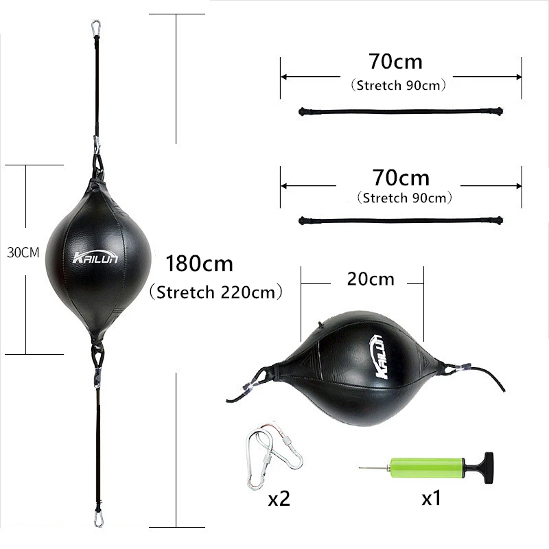 Особенности: 1. Изготовлен из прочного материала из искусственной кожи с износостойким и практичным. 2. Разработан с эластичной подвесной веревкой для сильного удлинения и надежного использования. 3. Оснащен надувным устройством для легкого надувания/сдувания мяча. 4. Широко используется для бокса, тренажерного зала, фитнеса, санды, борьбы, ежедневной тренировки реакции, точности, ловкости, выносливости и т. д. Характеристики: Тип товара: мяч для бокса Материал: из искусственной кожи, бутилового латекса Стиль: подвесной Метод надувания: Самонадувающийся Цвет: как показано на картинке (есть 6 стилей на ваш выбор) Размер: 20*180 см (диаметр * длина) Посылка включает в себя: 1 * мяч скорости бокса 1 * насос 2 * крючки Примечания: 1. Пожалуйста, учитывайте разницу в 2-3% в соответствии с ручным измерением. 2. Реальный цвет товара может быть s светильник ly отличаться от изображений, размещенных на веб-сайте, по причине многих факторов, таких как яркость вашего монитора и светильник яркость.