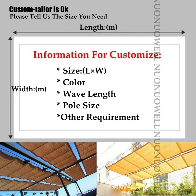 Подгоняйте утолщенную телескопическую волнистую сетку для солнца, двора, павильона, солнечных парусов, теней для комнаты, теней, ткань для балкона, террасы, навесные сетки