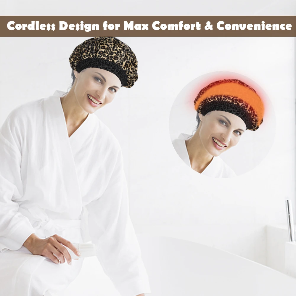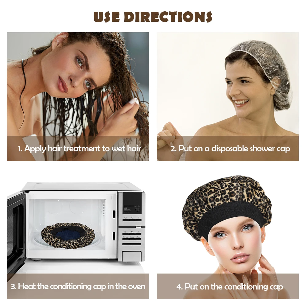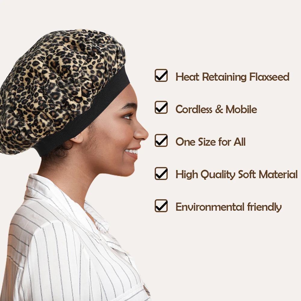 4. Экологичность: многократно использовать, просто нагрев в течение 1 минуты в микроволновой печи. Размер шапочки гибкий, подходит для всех типов и текстур волос. До 30 минут мягкого тепла.
