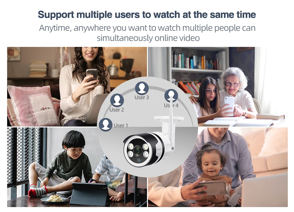 Просто включите питание, добавьте устройство как руководство пользователя, вы сможете удаленно просматривать камеру с вашего мобильного телефона, планшета и ПК в любом месте в любое время.