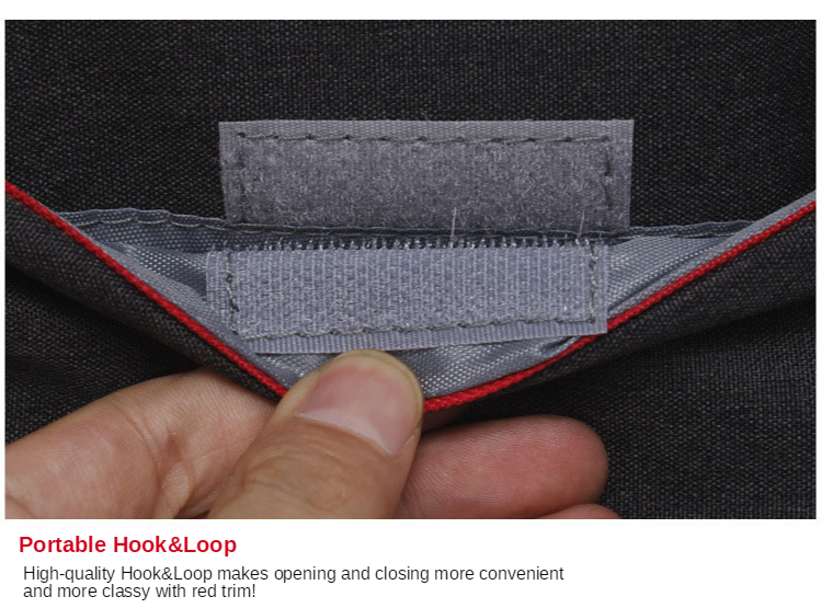 Высококачественный крючок и петля делает открытие и закрытие более удобным и более стильным с красной отделкой!
