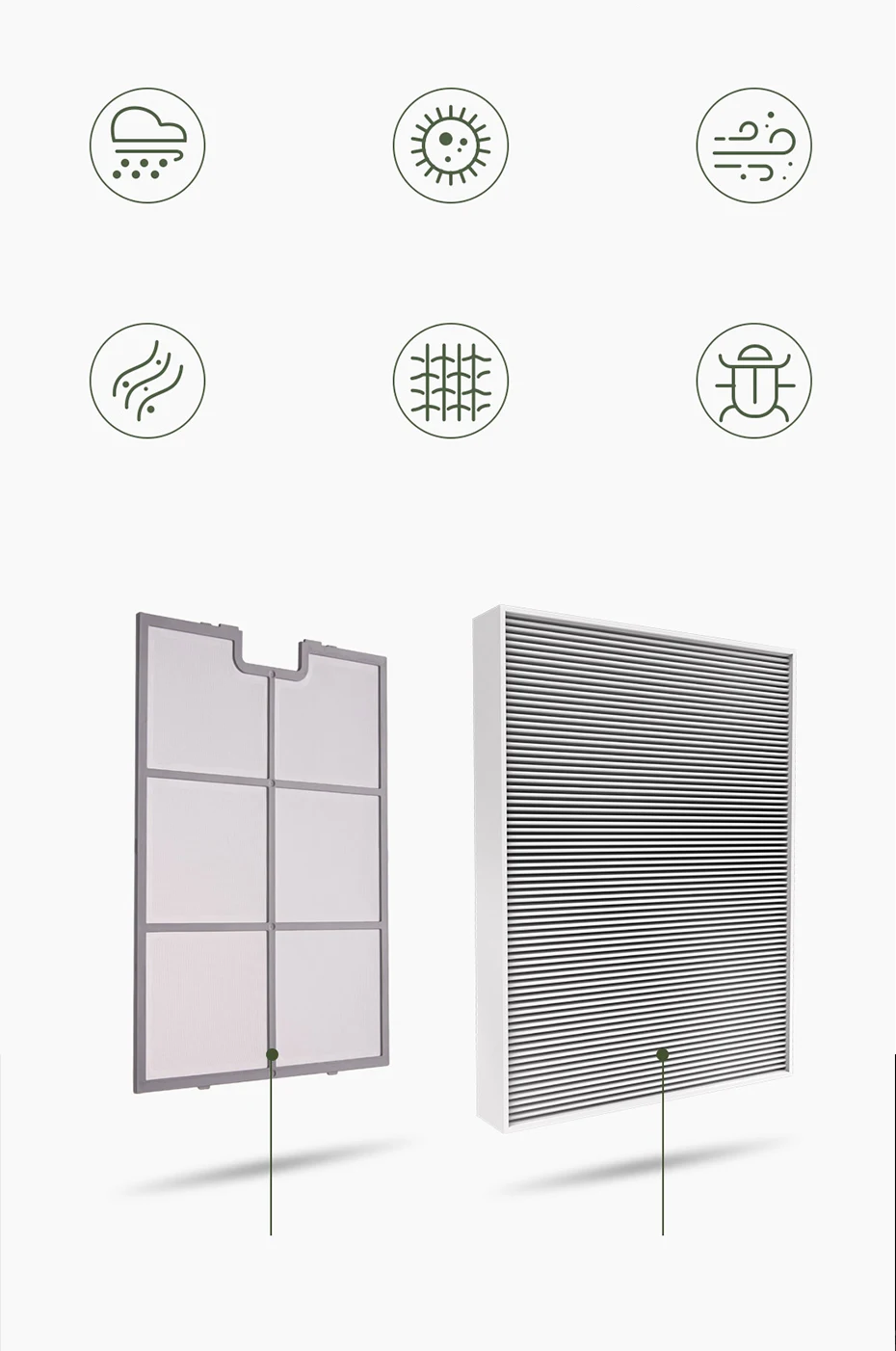 Используется комбинация первичного фильтра и высокоэффективного фильтра H13 HEPA, чистый метод физической фильтрации, защита окружающей среды и отсутствие вторичного загрязнения, защита двойного фильтра, большая пылеудерживающая способность, высокая точность фильтрации, И более длительный срок службы фильтра.