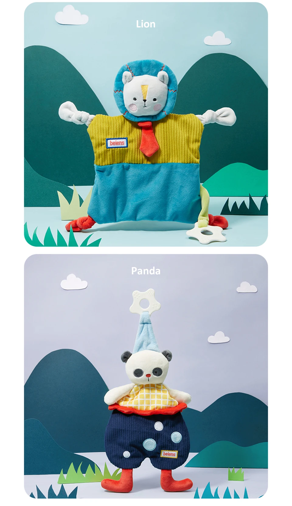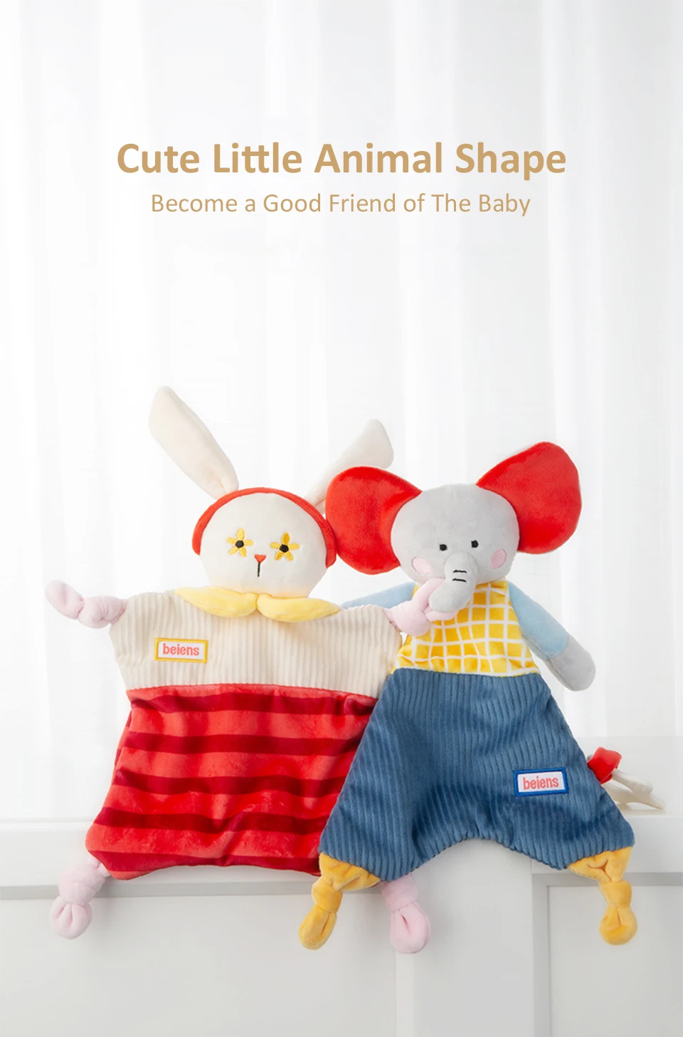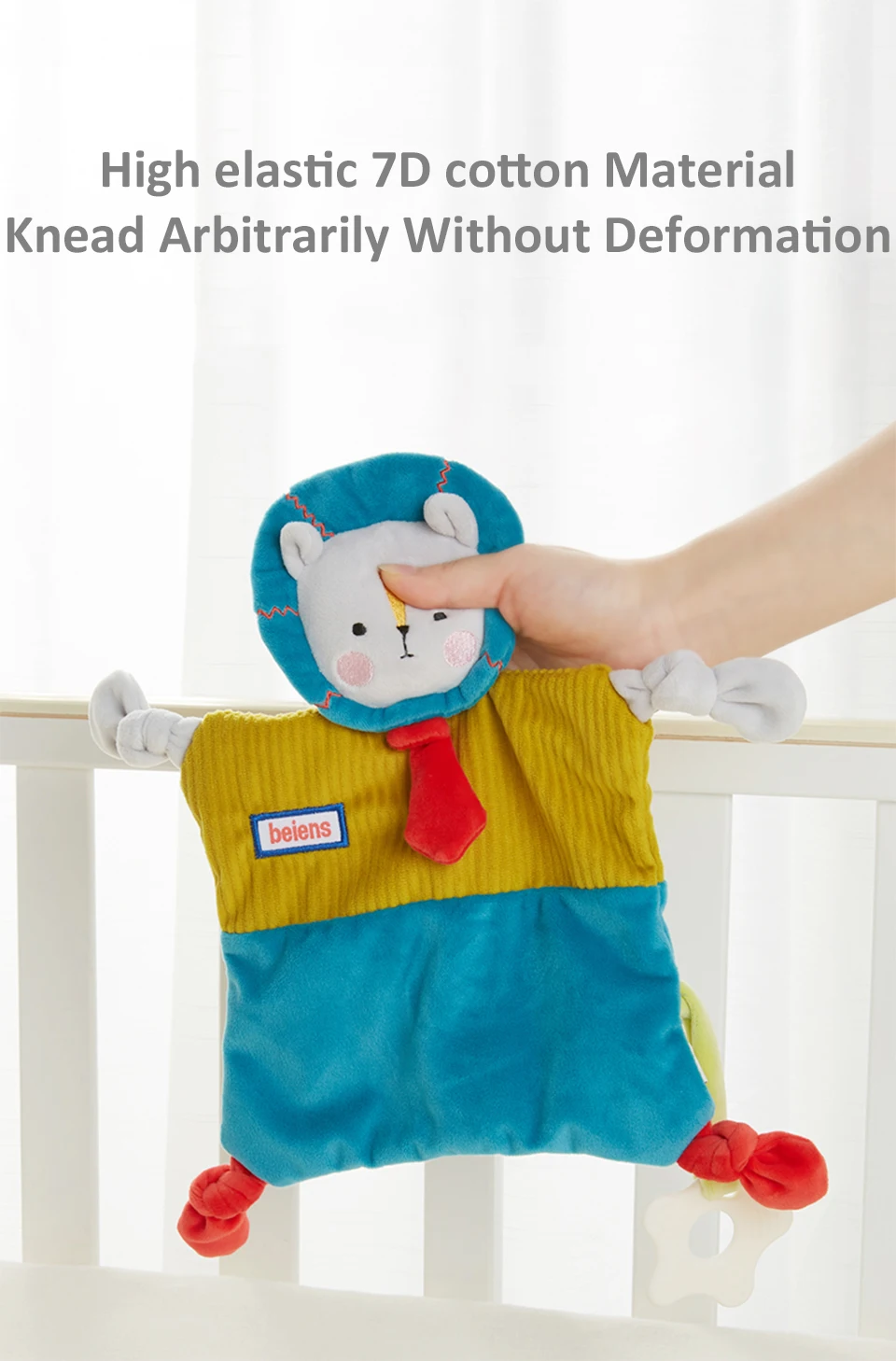Материал: 100% полиэстер + ТПЭ Упаковка: коробка Стиль: Слон/Кролик/Лев/панда Подходящий возраст: младенцы старше 0 лет Особенности: 1. Изготовлен из высококачественных материалов, мягкий, нетоксичный и прочный. 2. Поставляется с мягкой гуттаперкой для снижения беспокойства ребенка во время прорезывания зубов. 3. Успокаивает ребенка и уменьшает плач 4. Не деформируется после стирки, сохраняет ощущение пышности