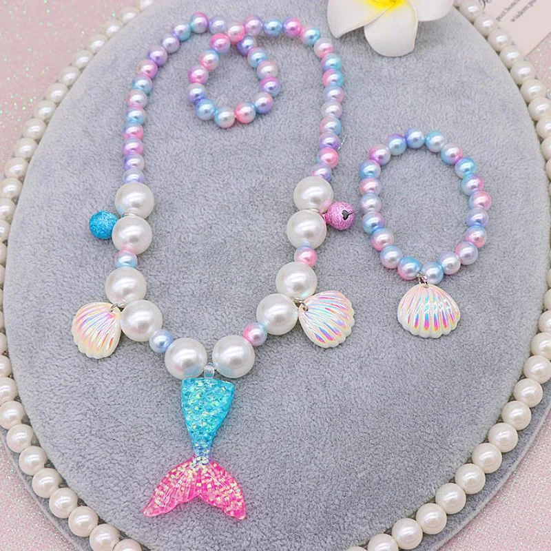 Детский набор для макияжа для девочек, серьги, кольцо, браслет, макияж, ожерелье, жемчуг, хвост русалки, форма, ювелирные изделия, игрушки для детей, подарок, 10 лет
