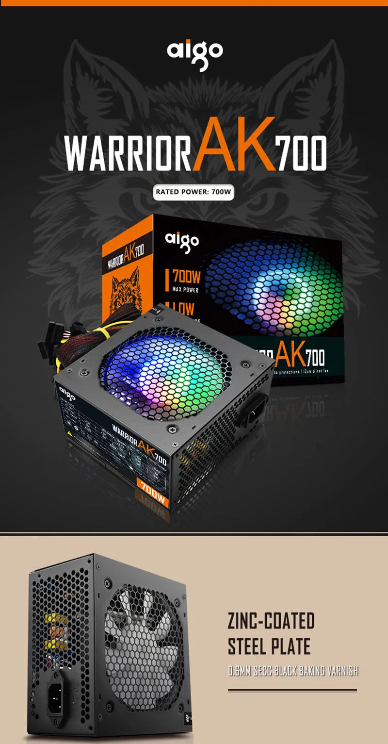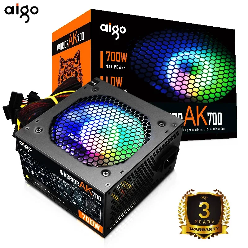 Блок питания Aigo RGB 700 Вт тихий блок питания компьютера 12 В ATX активный блок питания для ПК охлаждающий вентилятор для Intel AMD BTC настольных игр