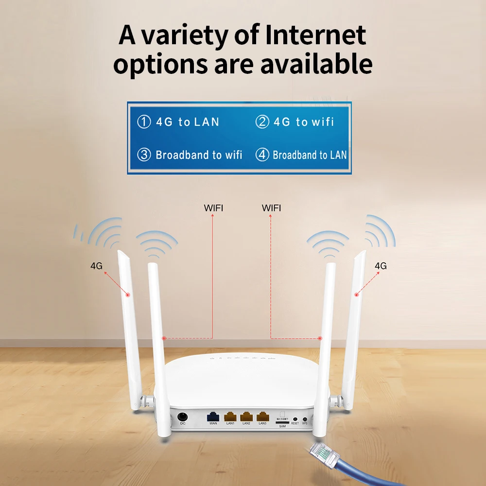 Поддержка 4G беспроводного и проводного режима, сеть 4G может использоваться для покрытия всего дома, не требуется сетевой кабель.