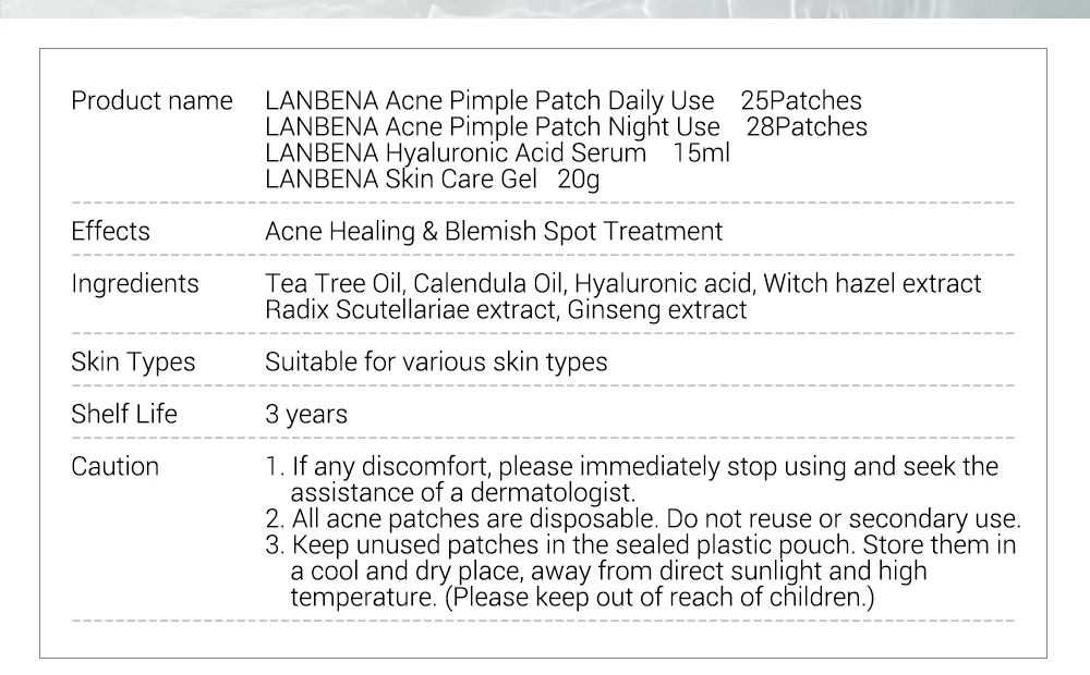 LANBENA маска для лица серия акне уход за кожей Гиалуроновая кислота сыворотка акне прыщи патч лечение акне гель для удаления прыщей крем для лица
