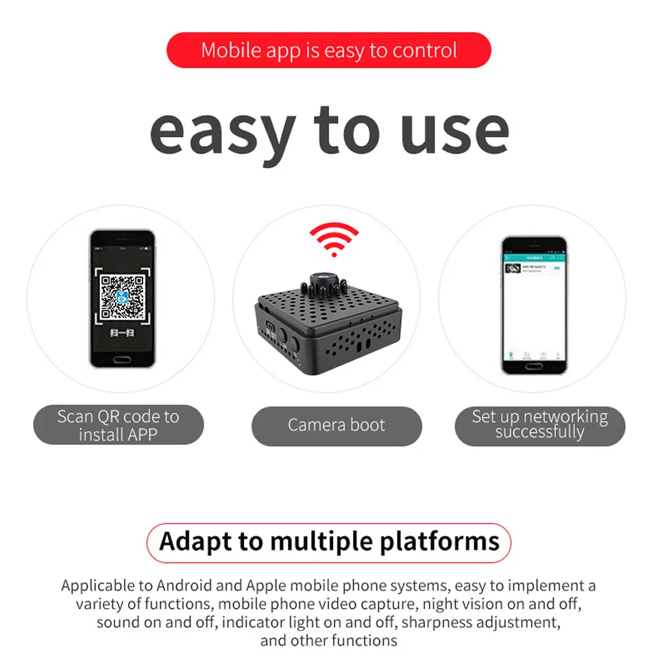 1 * Мини ip-камера (поставляется в оригинальной коробке)