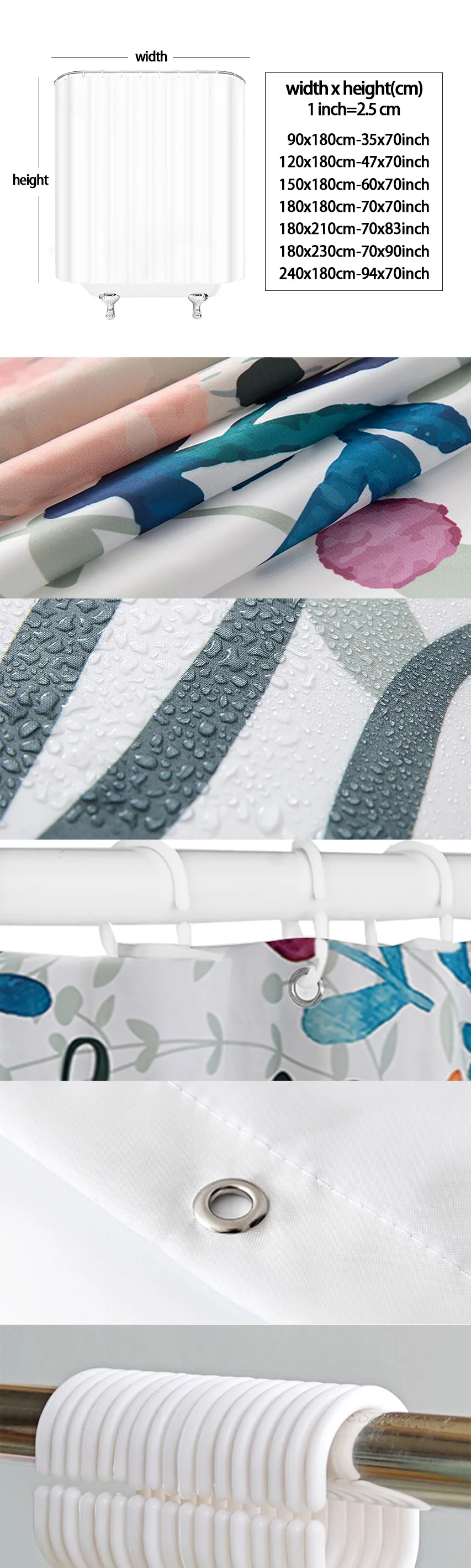 Советы: W означает ширину, H означает высоту! Посылка входит: 1 занавеска для душа Цена указана за 1 занавеску для душа Пожалуйста, допускайте небольшое отклонение из-за (1-3 см) подшивки. Из-за различий в мониторах и яркости цвета могут незначительно отличаться. Благодарим за понимание! Описание: 1. Изготовлен из 100% полиэстера; Антибактериальный, водонепроницаемый, устойчивый к плесени, безопасный и экологически чистый 2. Рисунок Новый, смелый и не выцветает. Модный, индивидуальный, ретро, простой, милый, красочный, без красителей вредит здоровью вашей семьи, подходит для молодежи и детей 3. Машинная стирка, ручная стирка, холодная стирка, естественная сушка