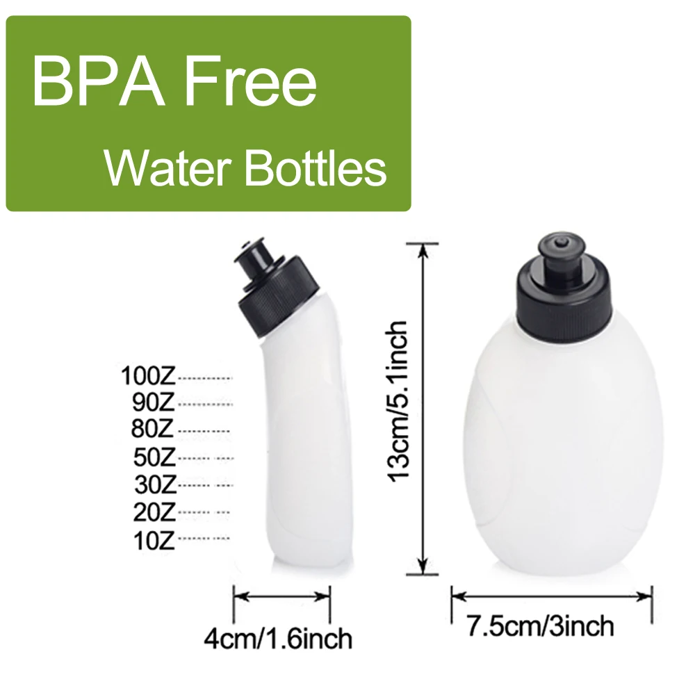 2 BPA бесплатно 280 мл бутылки для воды: 2 BPA бесплатно выдвижные пластиковые бутылки для воды защищены в неопреновых карманах с ремнями. Больше воды и грузоподъемность по сравнению с другими аналогичными беговыми ремнями. Не будет чувствовать жажду во время бега.