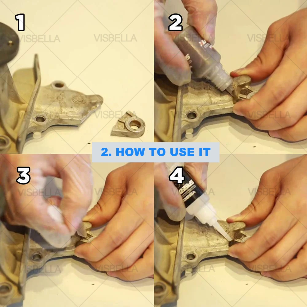 VISBELLA speedy-fix repairs almost anything with unique reinforcing and filling capabiliyies.It can be quick fixed with high bond strength in just 7~15 seconds. Breaks, cracks, holes and gaps can be quickly and esaily repaired.