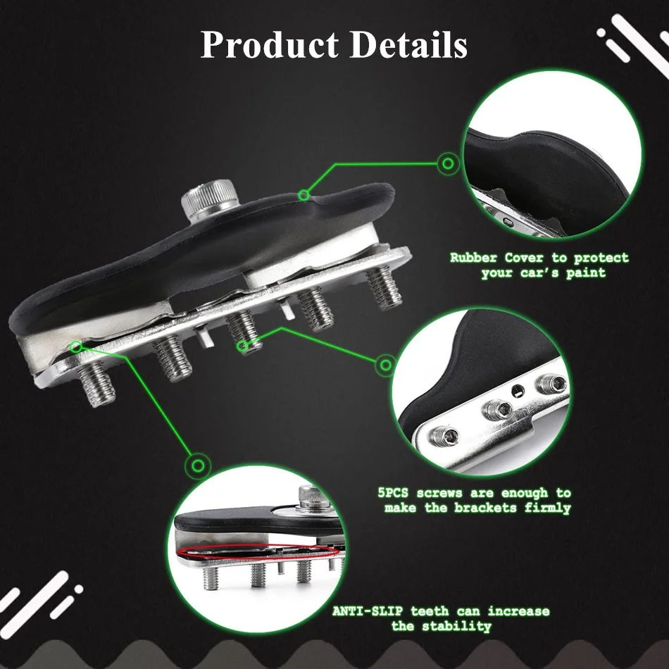 Поверхность, контактирующая с передней крышкой автомобиля, покрывает многослойный нескользящий композитный материал и материалы для предотвращения потери, чтобы гарантировать, что контактная поверхность кронштейна не повредит поверхность автомобиля