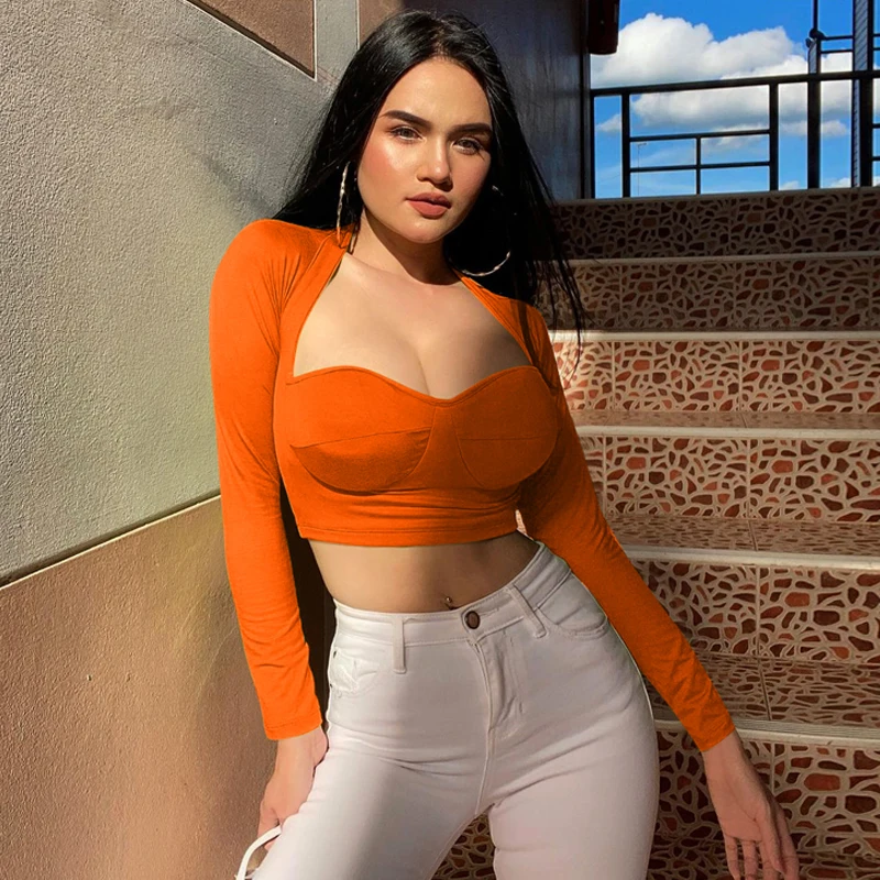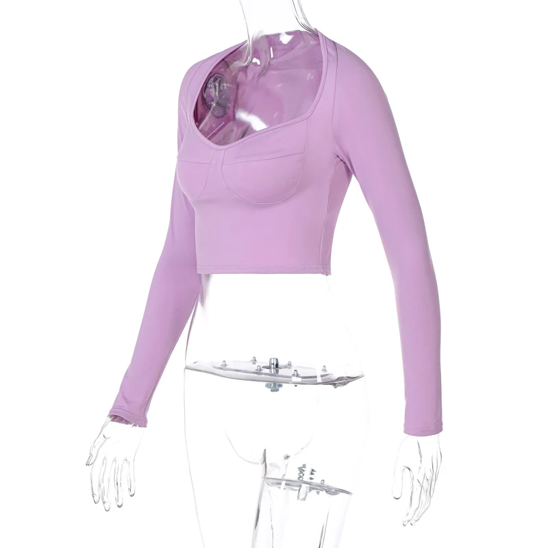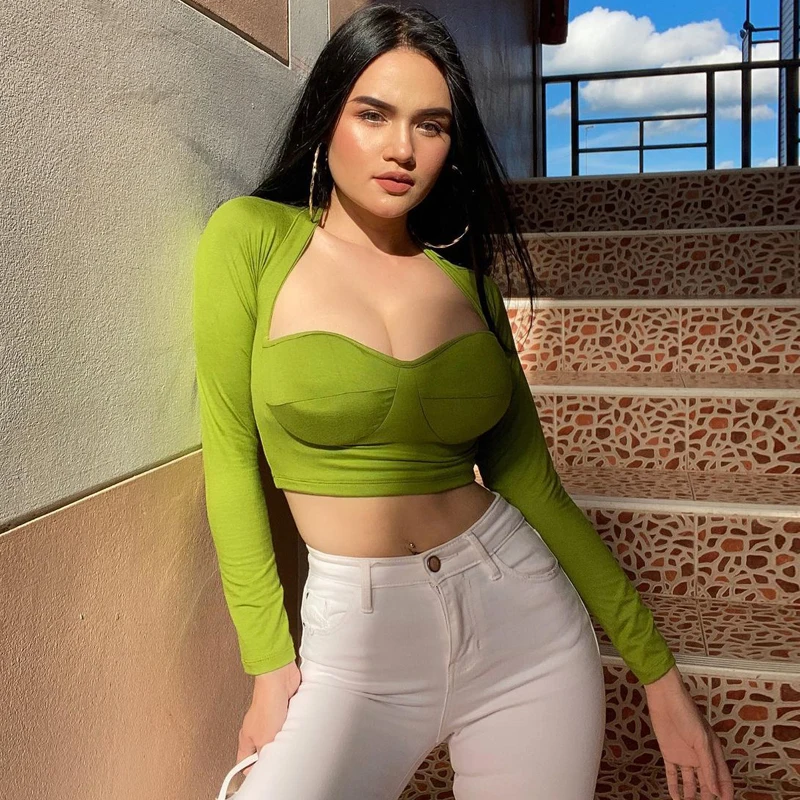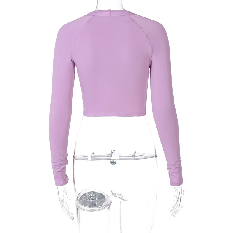 Топы с V-образным вырезом горловины и длинными рукавами. Однотонный, простой и стильный дизайн.