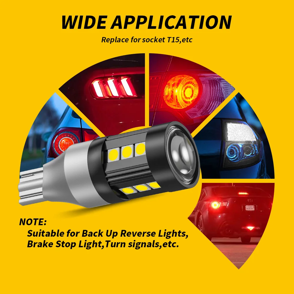 DXZ 10 шт. T15 W16W светодиодный светильник T16 Canbus 12 SMD 1200LM 921 912 задний указатель поворота автомобиля запасной тормозной светильник 12V 6500K