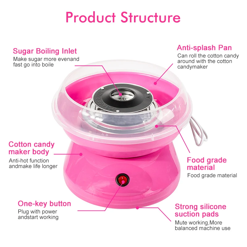 Параметр: Вилка: 220 В штепсельная вилка европейского стандарта/110 В штепсельная вилка американского стандарта Материал: пластиковый корпус, нержавеющая сталь Размер изделия: 26x26x18 см; Примечание: 1. Из-за ручного измерения есть 1-3 мм различия 2. Из-за разницы между различными мониторами, пожалуйста, поймите, что изображение может не отражать фактический цвет товара. 3. Каждый продукт отправляется с бесплатными подарками! (10 бамбуковых палочек и одна сахарная ложка!) 【Использование Примечание 】 1. Подогрейте в течение 5-10 минут перед добавлением сахара 2, после предварительного нагрева, выключите машину и положите в сахар