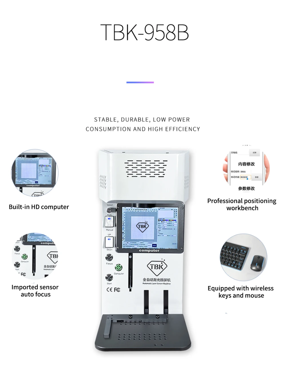 TBK958B мини полностью автоматическая машина для лазерного демонтажа Apple задняя крышка разделительная средняя рамка гравировальная и маркировочная машина