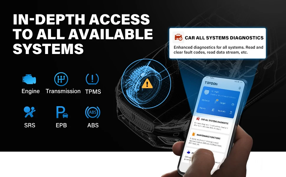 Этот многофункциональный инструмент сканирования obd2 может сканировать и очищать DTCs, а также отображать данные в реальном времени во всех доступных автомобильных системах, более 120 марок автомобилей по всему миру одним касанием для двигателя, передачи, подушки безопасности, ABS, ESP, TPMS, иммобилайзер, шлюз, рулевое управление, радио, кондиционер и т. Д. * Полные системы отличаются от различных автомобилей. 1. Для системы двигателя: взгляните на наиболее распространенные проблемы, связанные с сбоями двигателя автомобиля, как: плохая смазка, неисправность масляного насоса, залежи масла и мусора, недостаточное сжатие топлива и воздуха, утечка охлаждающей жидкости двигателя, блокированные радиаторы двигателя, длительная Детонация двигателя, поврежденные кислородные датчики, состаренные свечи зажигания и т. Д., Чтобы избежать поломок двигателя, или даже требуется совершенно новый. 2. Для системы SRS: проверяйте все аспекты вашей системы подушки безопасности, чтобы определить проблемную область, например: плохой ремень безопасности, поврежденный датчик аварии или какое-то вторжение воды в разъем, В противном случае вам понадобится механик для устранения проблем. 3. Для системы ABS: диагностируйте, что вызывает свет ABS. Некоторые общие проблемы включают в себя: Предохранитель датчика выдувания, низкие тормозные жидкости и неисправный датчик. Это важно для предотвращения выхода колес из-под контроля блокировки и скольжения. 4. Для системы передачи: будьте внимательны и внимательны, чтобы обеспечить его длительную работу в чехол: измельчение или дрожание в шестерне, нытье, гудение или сжигание шумов, сжигание запахов, шестерня скольжения, низкая или протекающая трансмиссионная жидкость. 5. Для Системы TPMS: Проверьте общую проблему TPMS, такую как: низкое давление в шинах, неисправность в модуле контроля давления в шинах, неизвестный датчик шин, отказ в идентификации датчика шины. 6. И многое другое.
